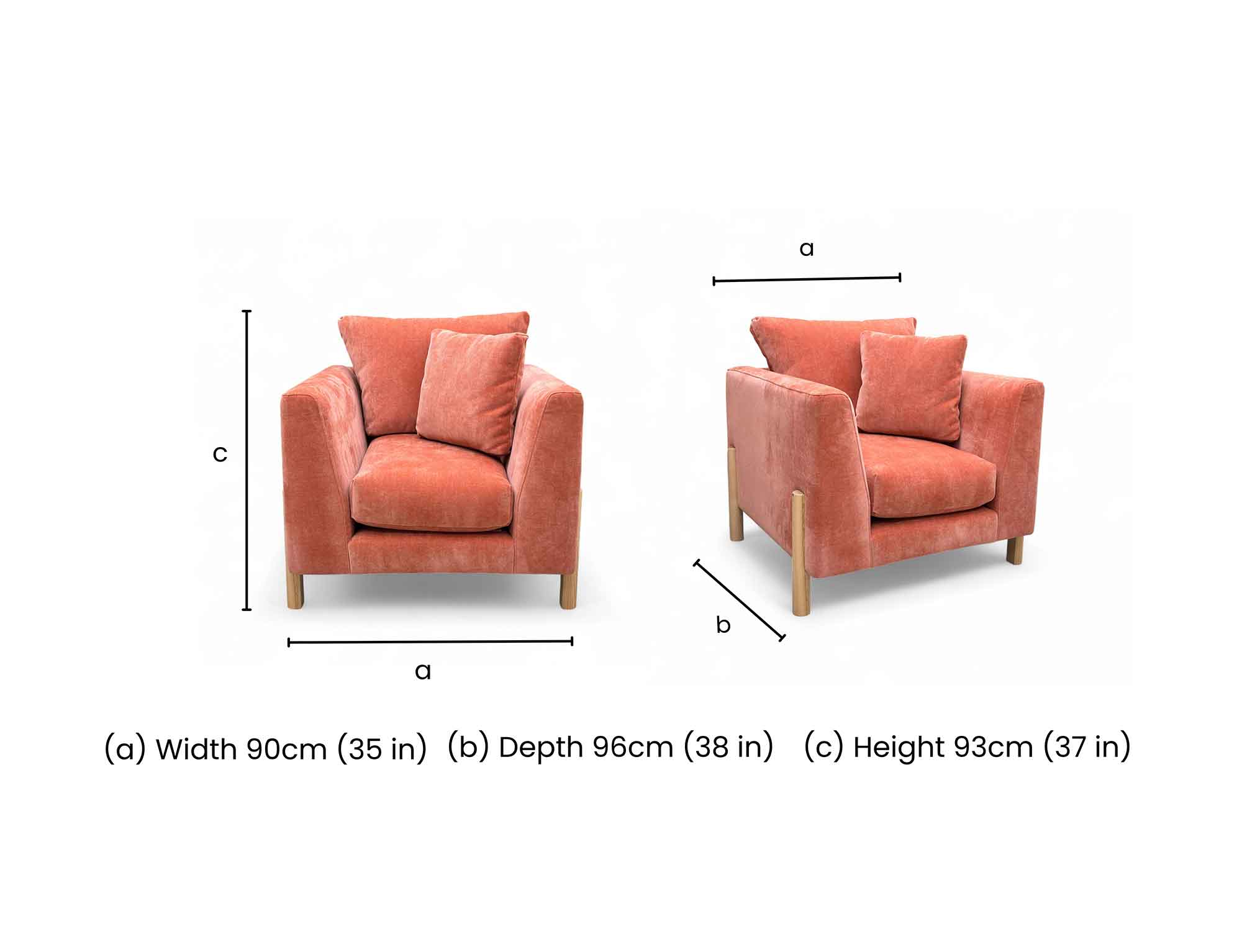 - At 96cm in length, 93cm in height, and 90cm in width, this single seater armchair from the Aston product line by Habitat offers comfort and style in one stunning piece.