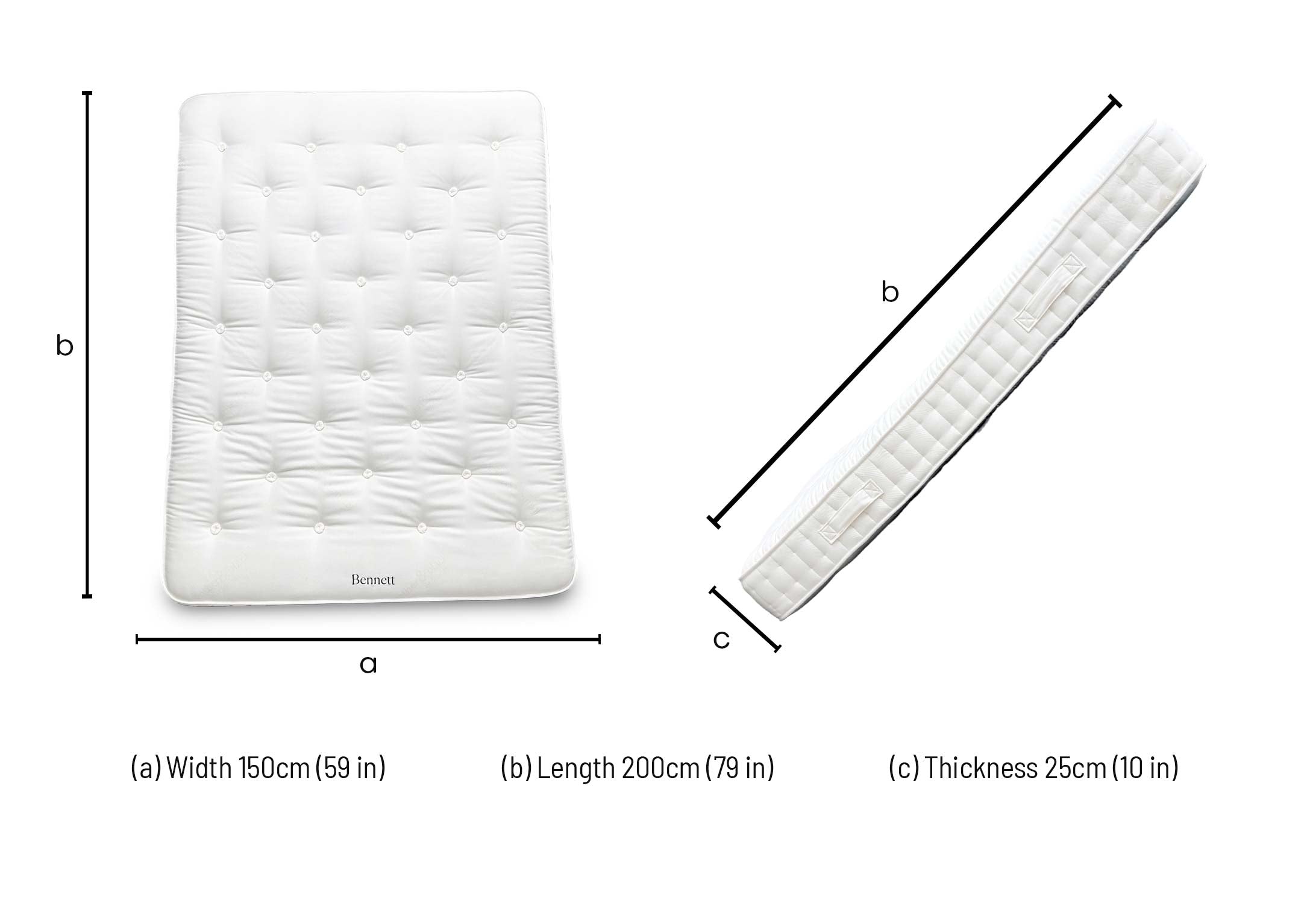 • At 25 cm thick and with dimensions of 200 cm in length and 150 cm in width, this mattress provides a perfect balance of support and comfort for a restful night's sleep.