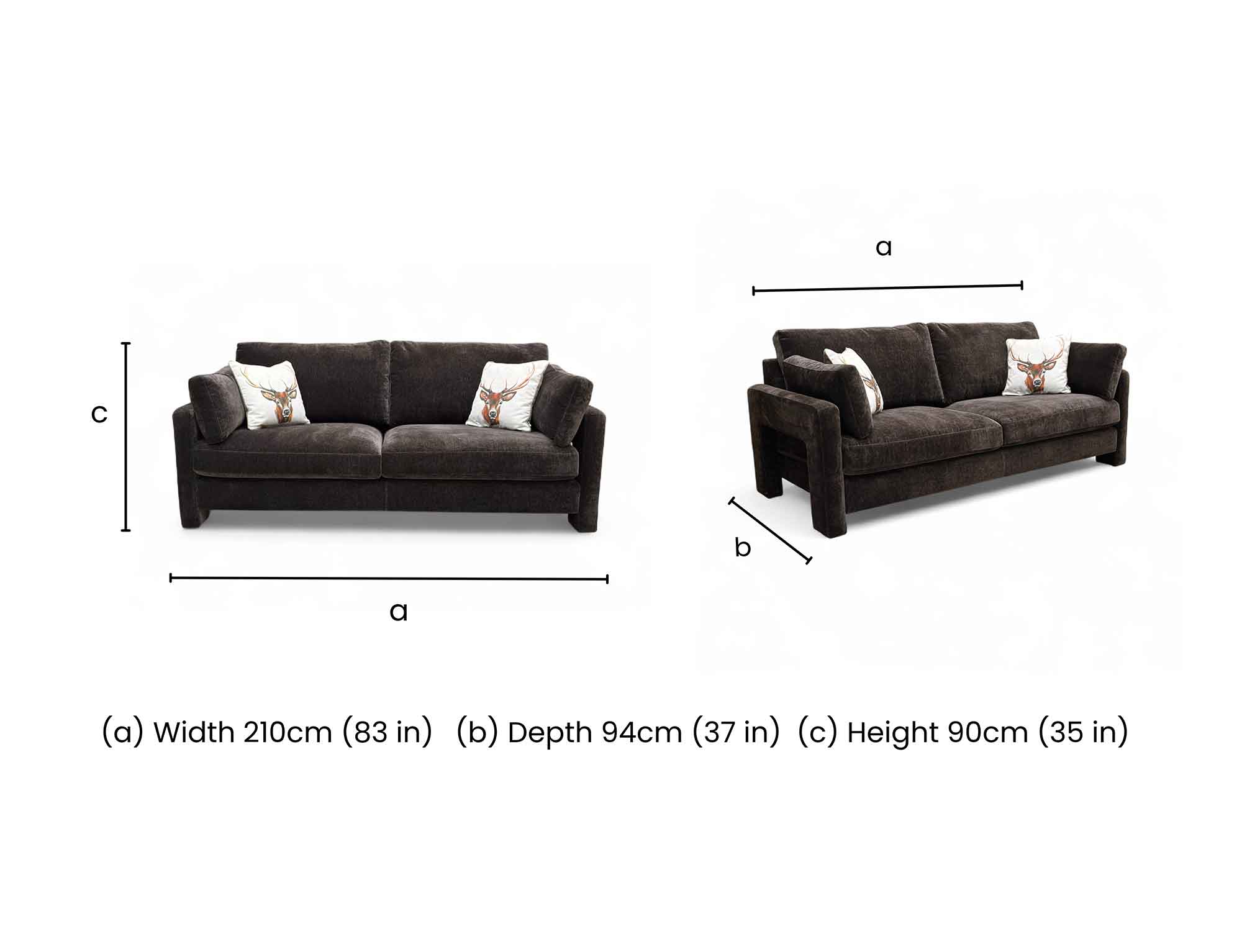 ‘Heath’ Dark Chocolate Chenille Fabric 4 Seater Sofa