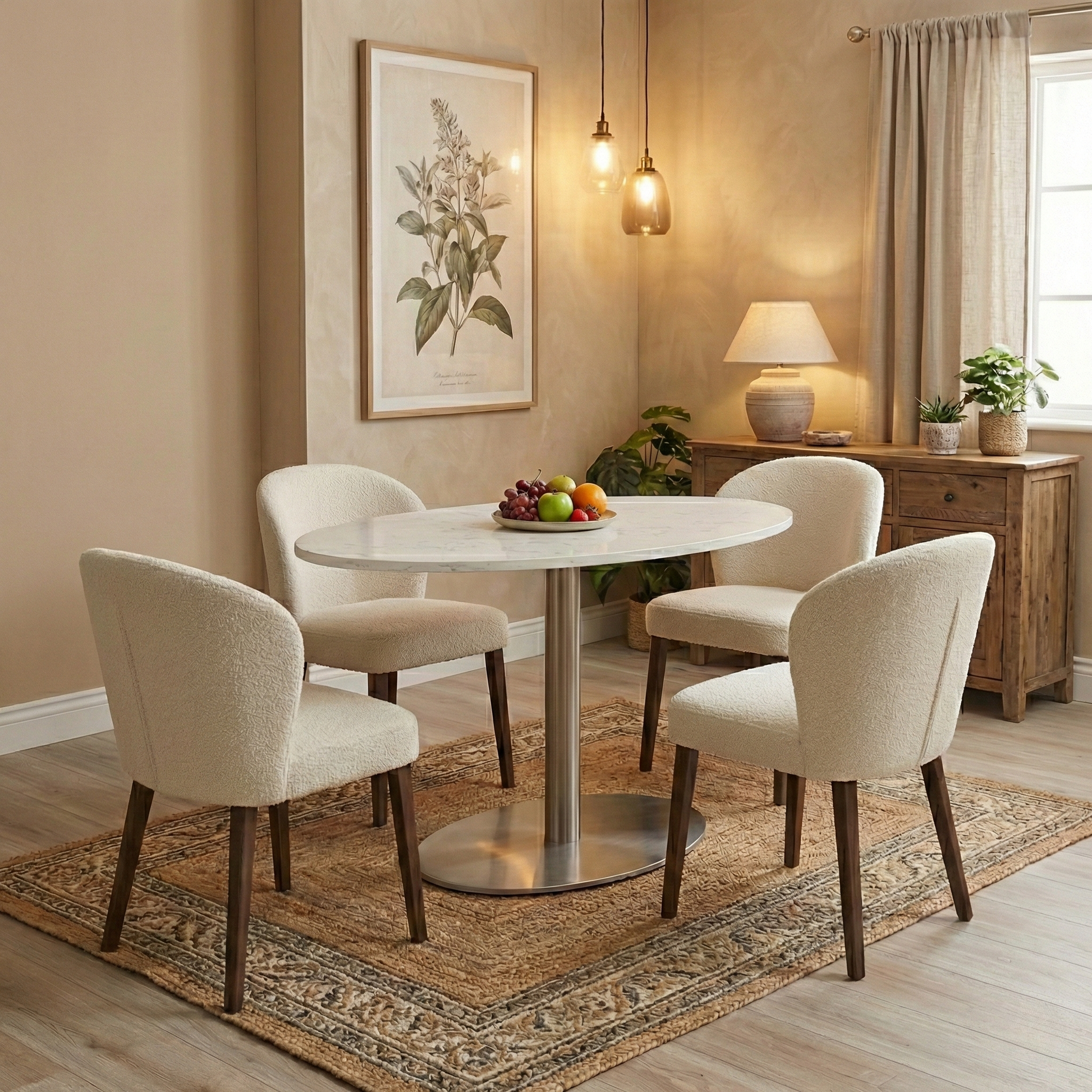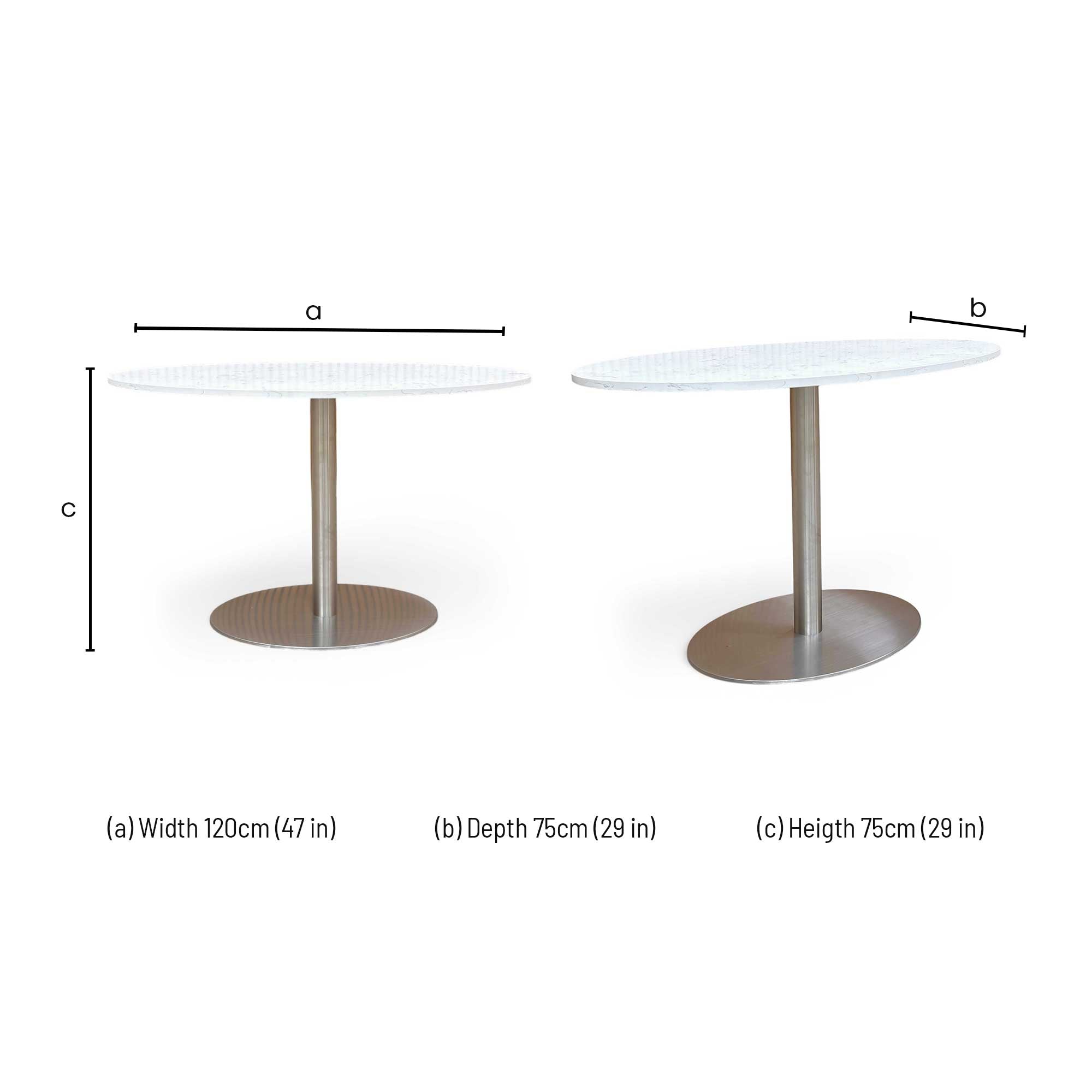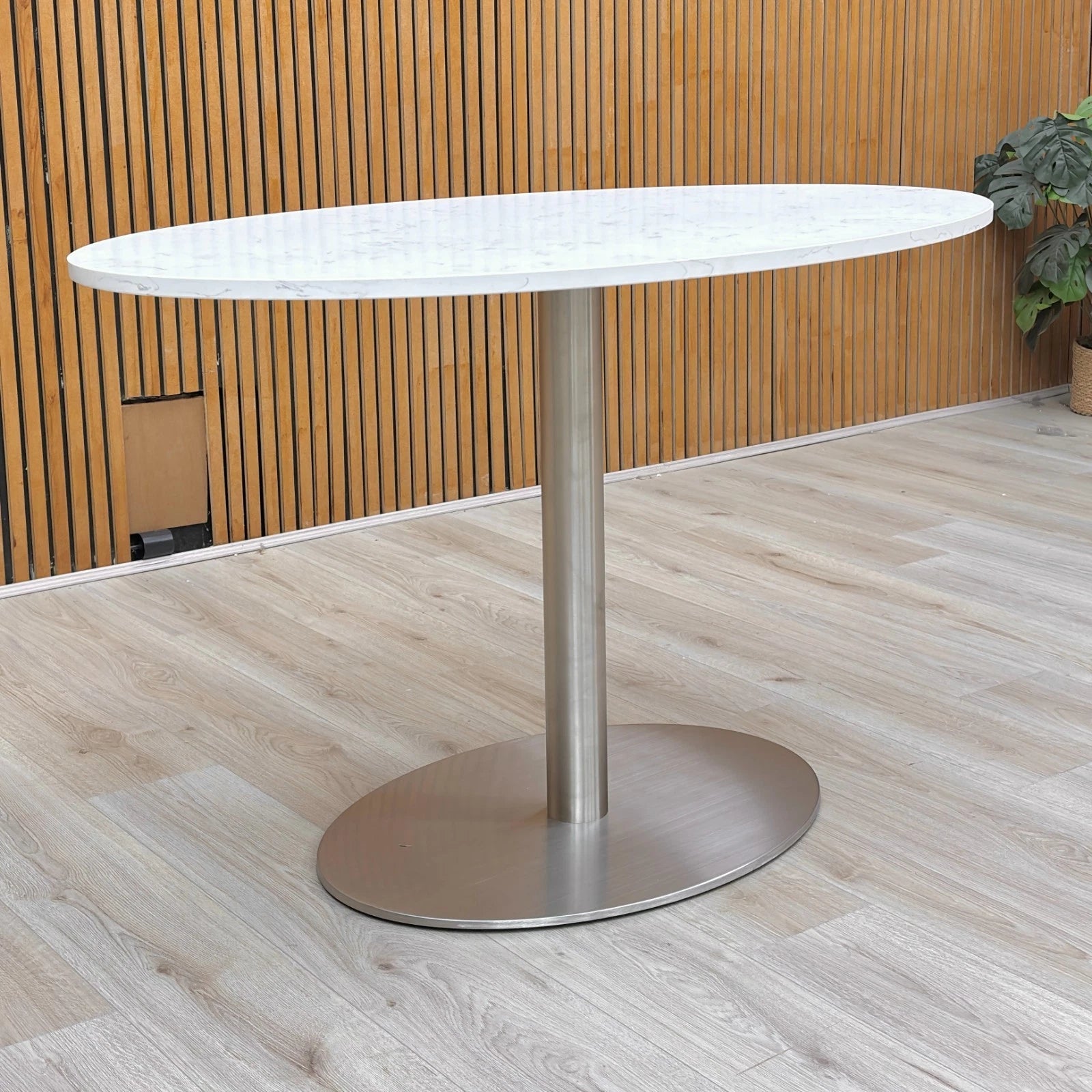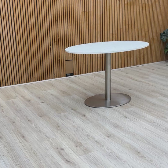‘Helsinki’ Bianco Miami Quartz Ceramic Top 120cm Fixed Oval Dining Table