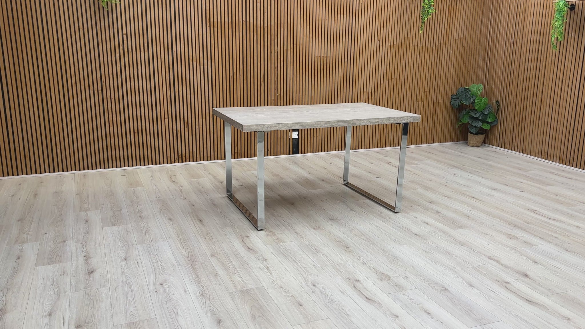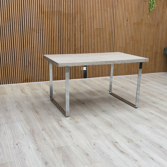‘Hollywood’ Marble Effect Solid Oak 140cm Fixed Dining Table with Metal U-Shaped Legs