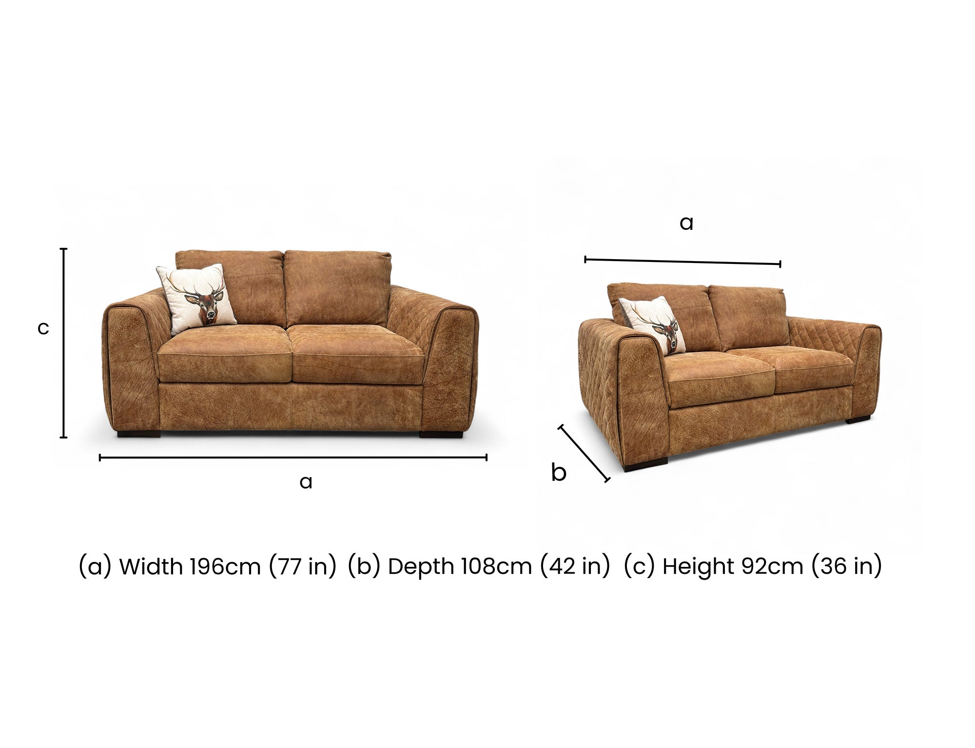 - Made from high-quality leather upholstery with a solid Ranch colour, this sofa features a contemporary design with a sloped arm and a modern back style.