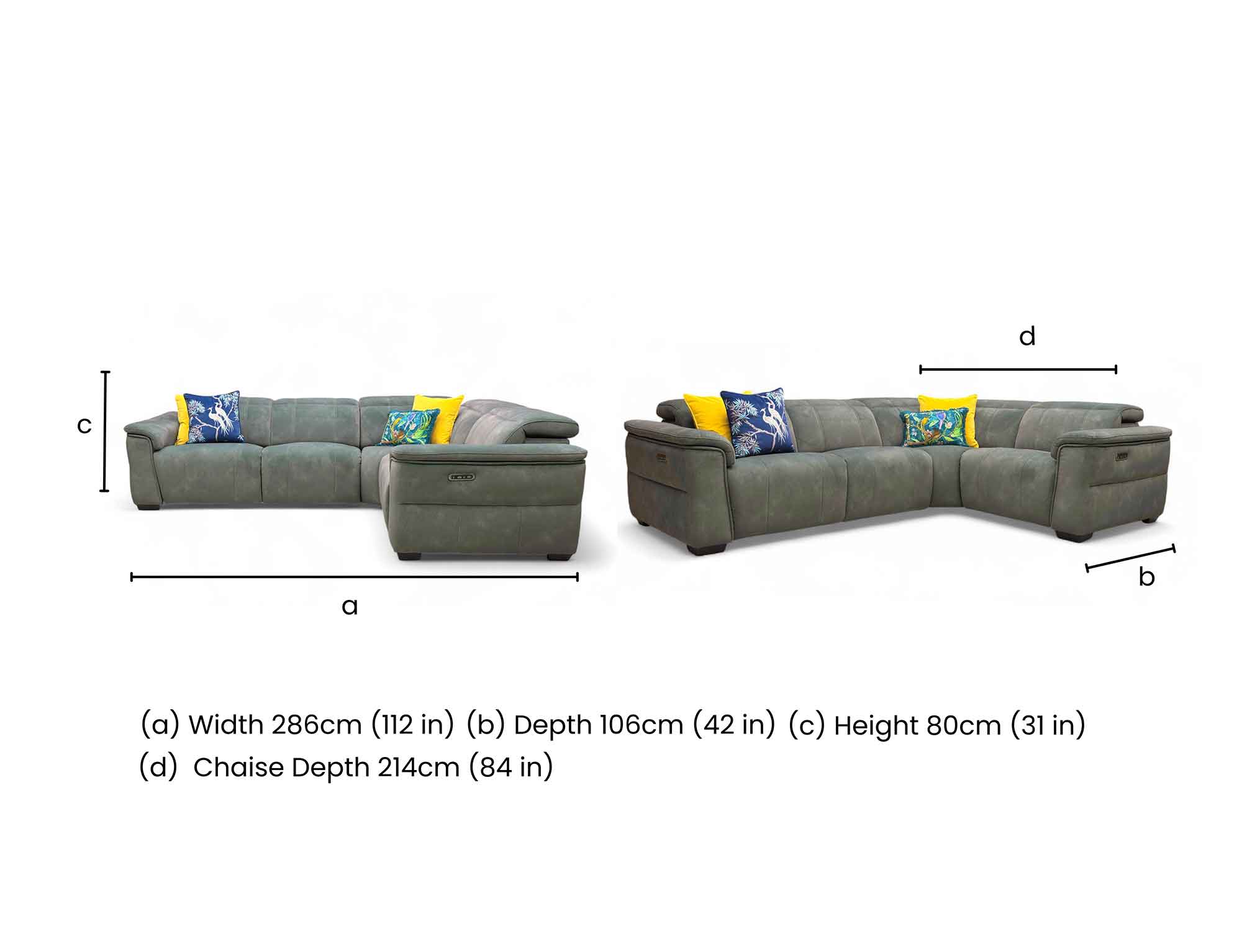 ‘Inca’ Dexter Moss 43515 Velvet Right Hand Facing Double Power Recliner Corner Sofa with Power Headrests