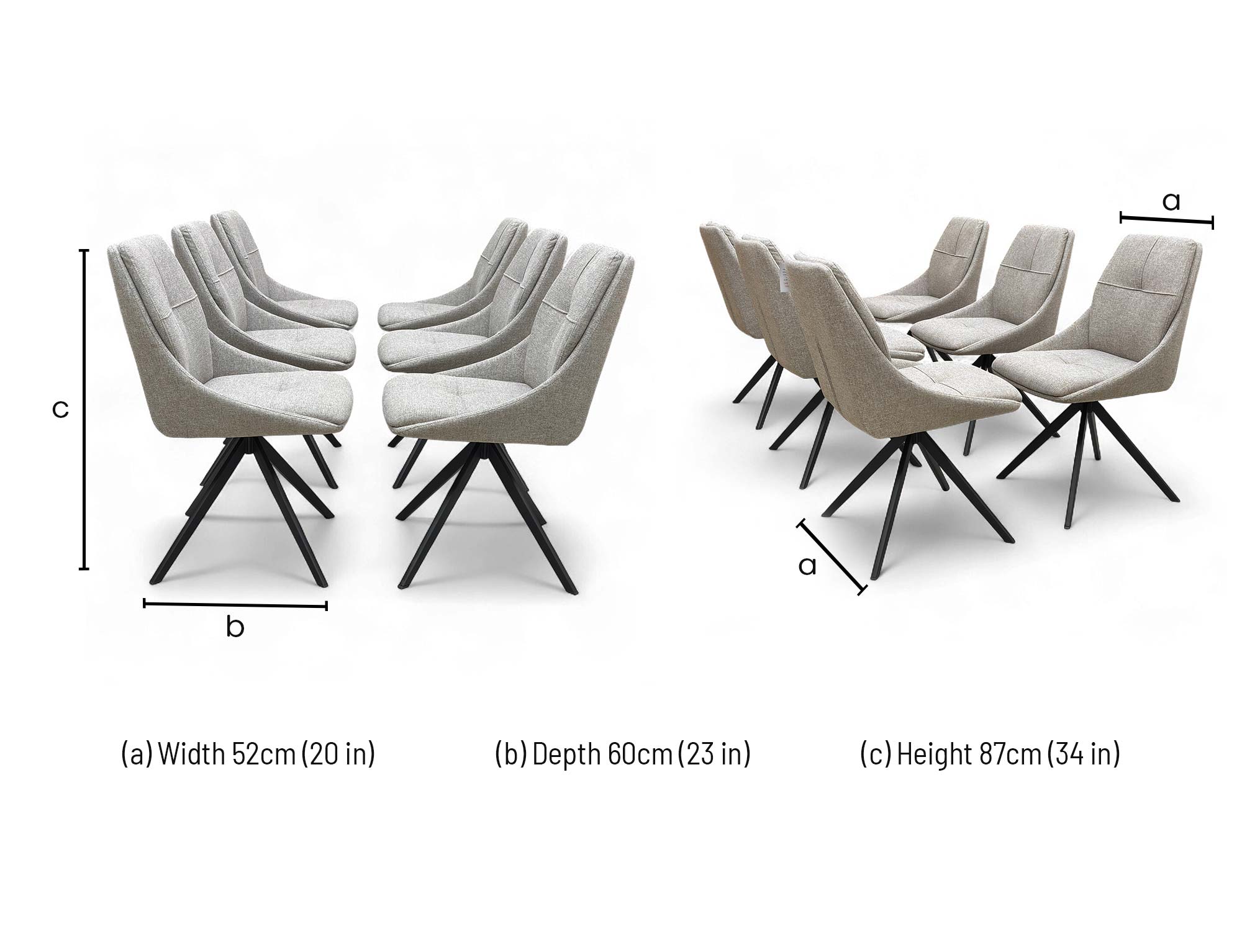 • The ‘Jasmine’ Latte Fabric Swivel Dining Chair Set of 6 is a stylish and contemporary addition to any dining room.