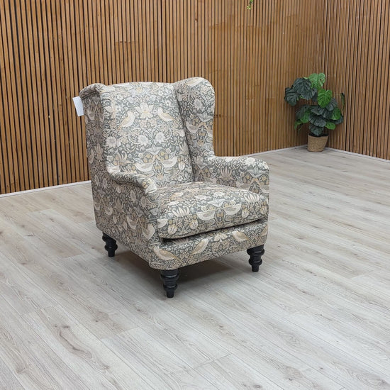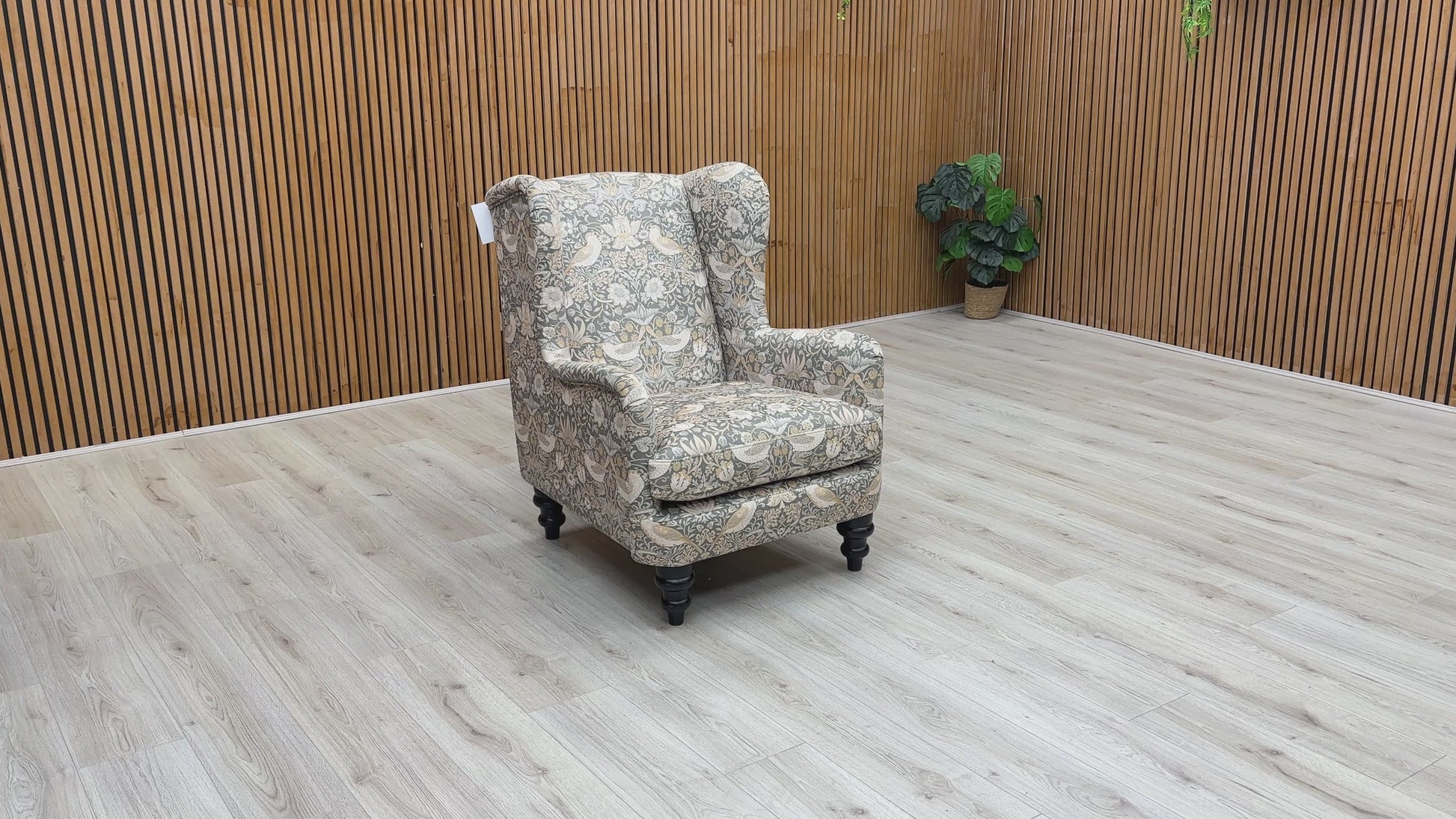 ‘Jhonson’ Green and Yellow Combination Floral Pattern Velvet Winged Accent Chair