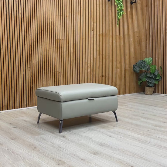 ‘Jude’ Montana New Grey Cat-60:28 Leather Storage Footstool