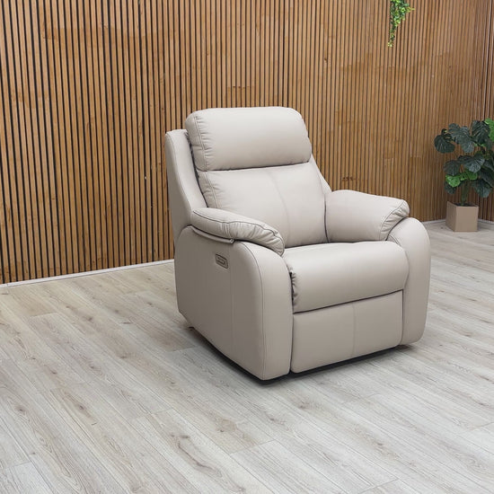 ‘Kingsbury’ L844 Cambridge Plaster Beige Leather Power Recliner Chair with Power Headrest and Power Lumbar
