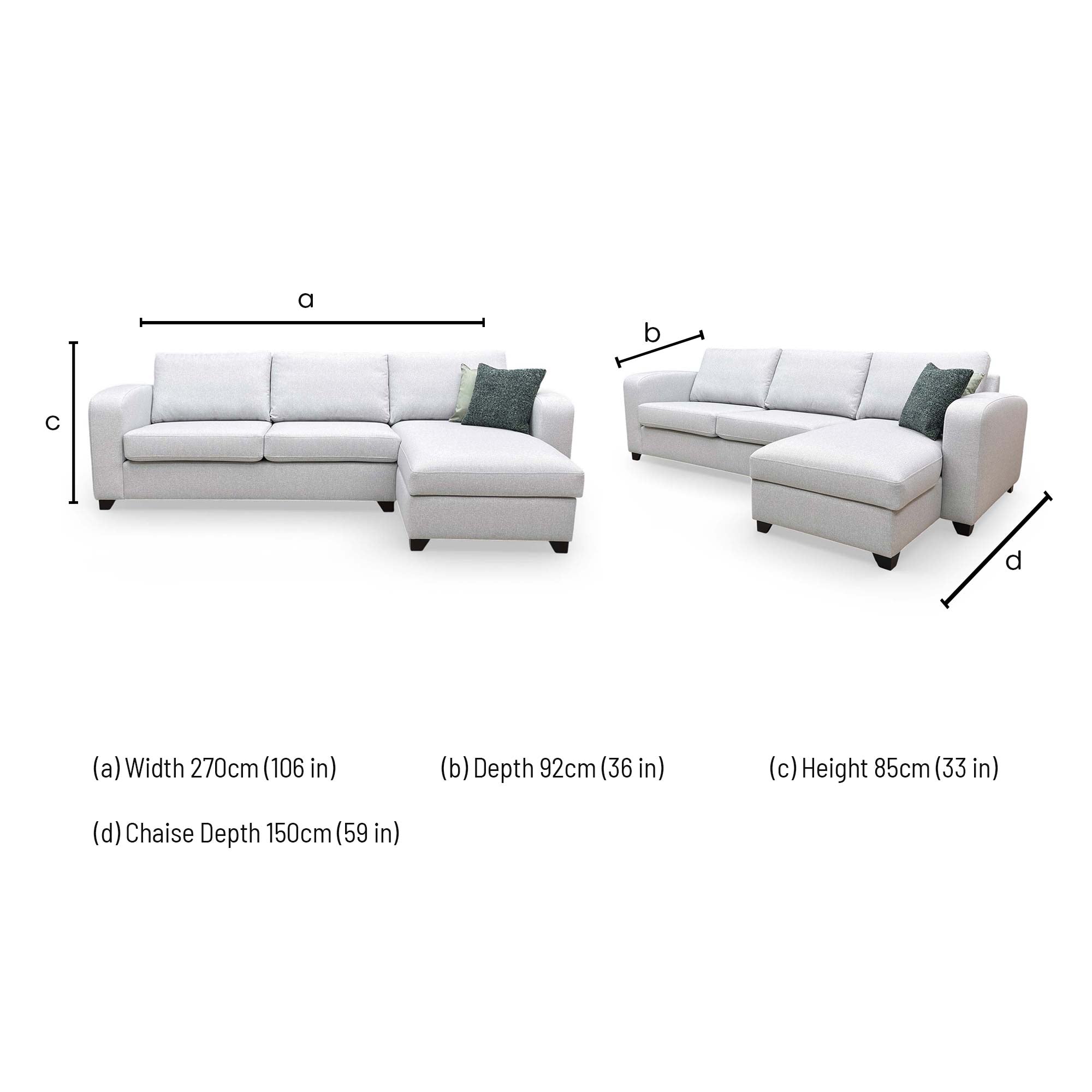 ‘Layla’ Silver Layla Plain Fabric Right Hand Facing Storage Chaise End 3 Seater Supreme Sofa Bed