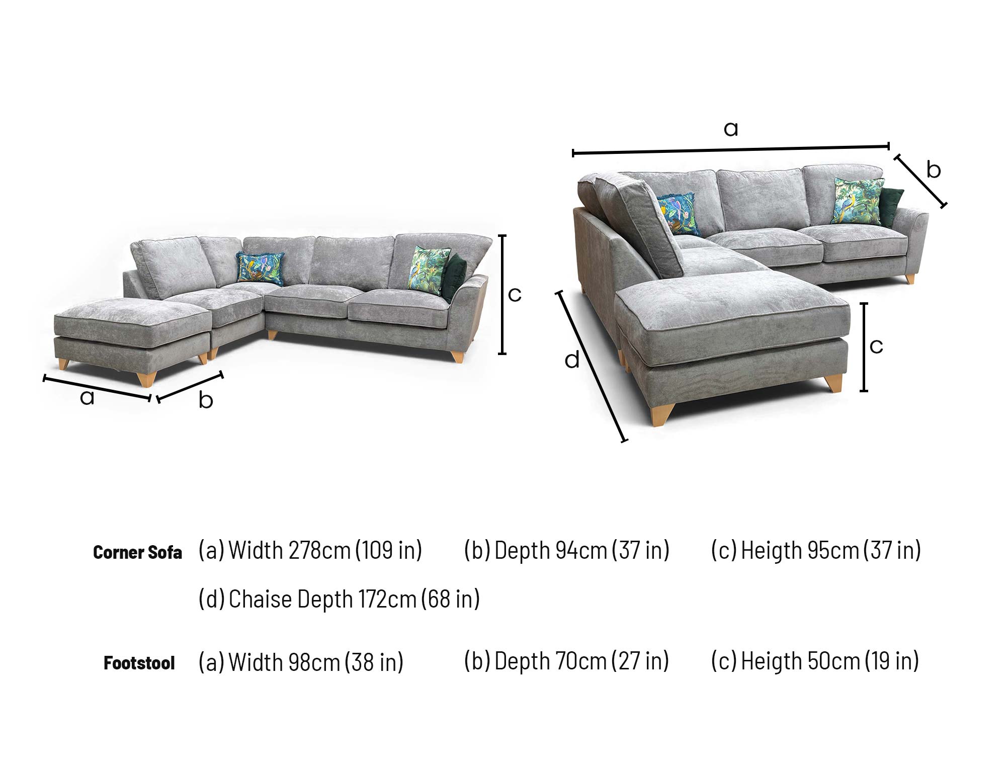 • Comes with a large footstool so you can create a luxurious chaise end.