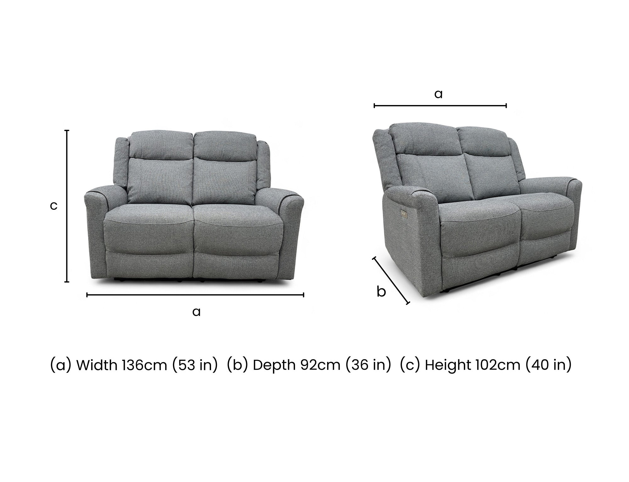'Lexus' Grey Fabric Power Recliner 2 Seater Sofa
