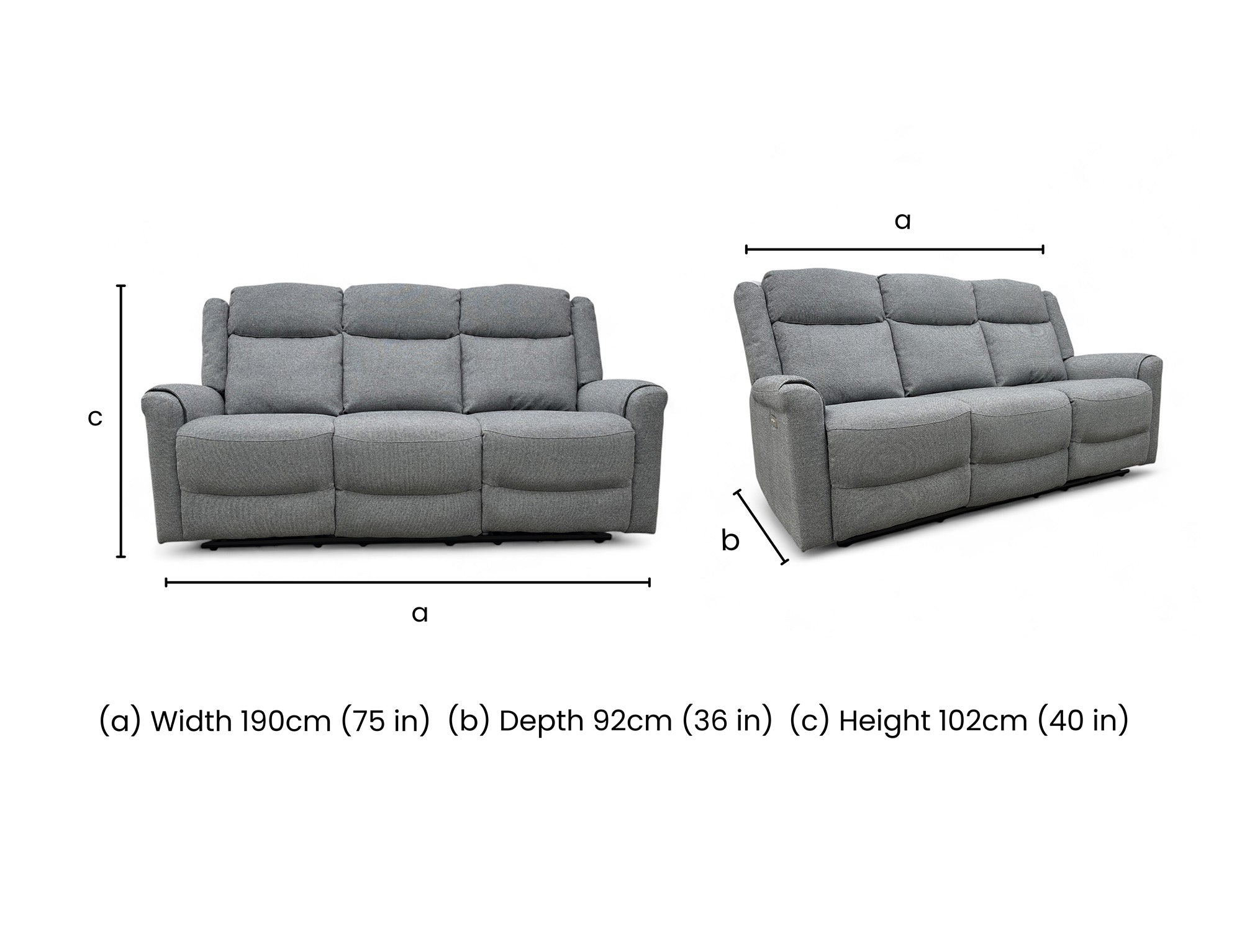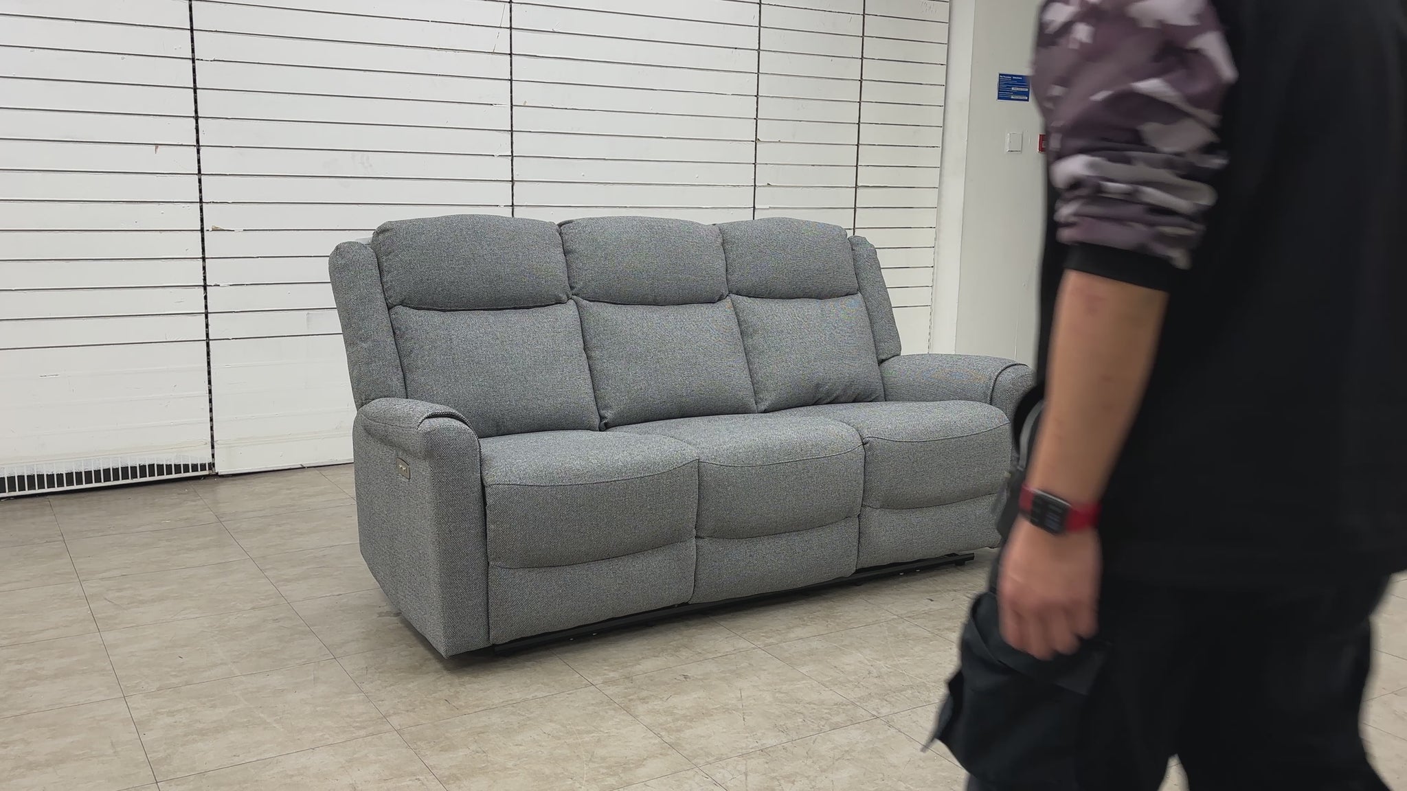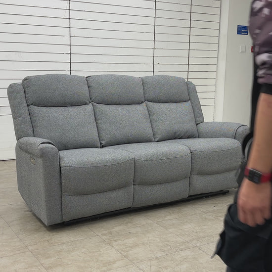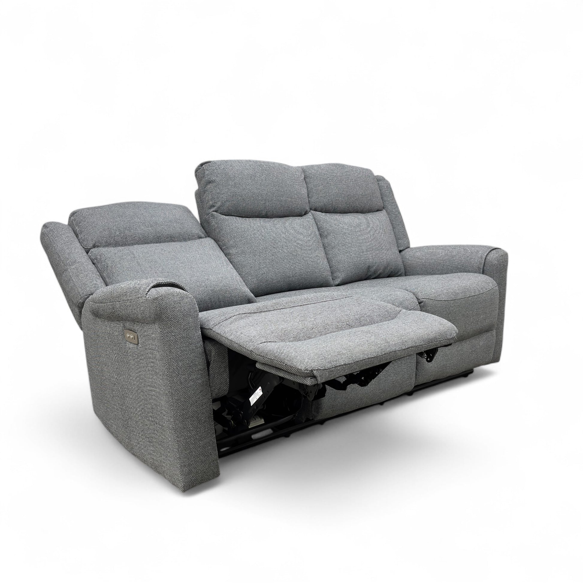 ‘Lexus’ Grey Fabric Power Recliner 3 Seater Sofa