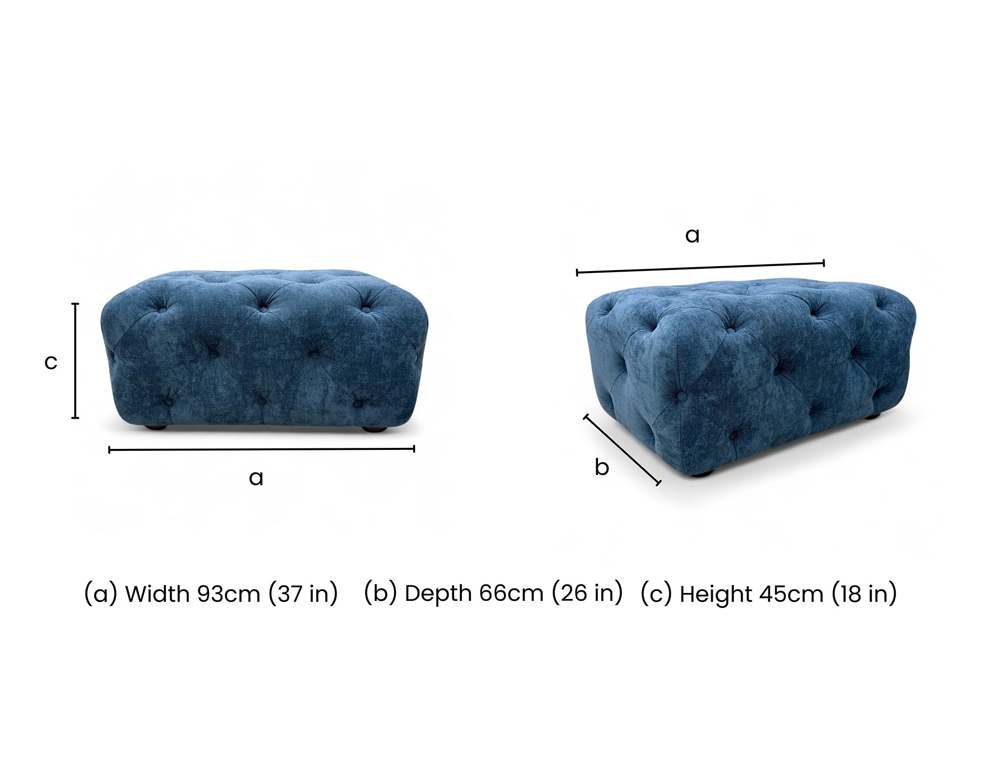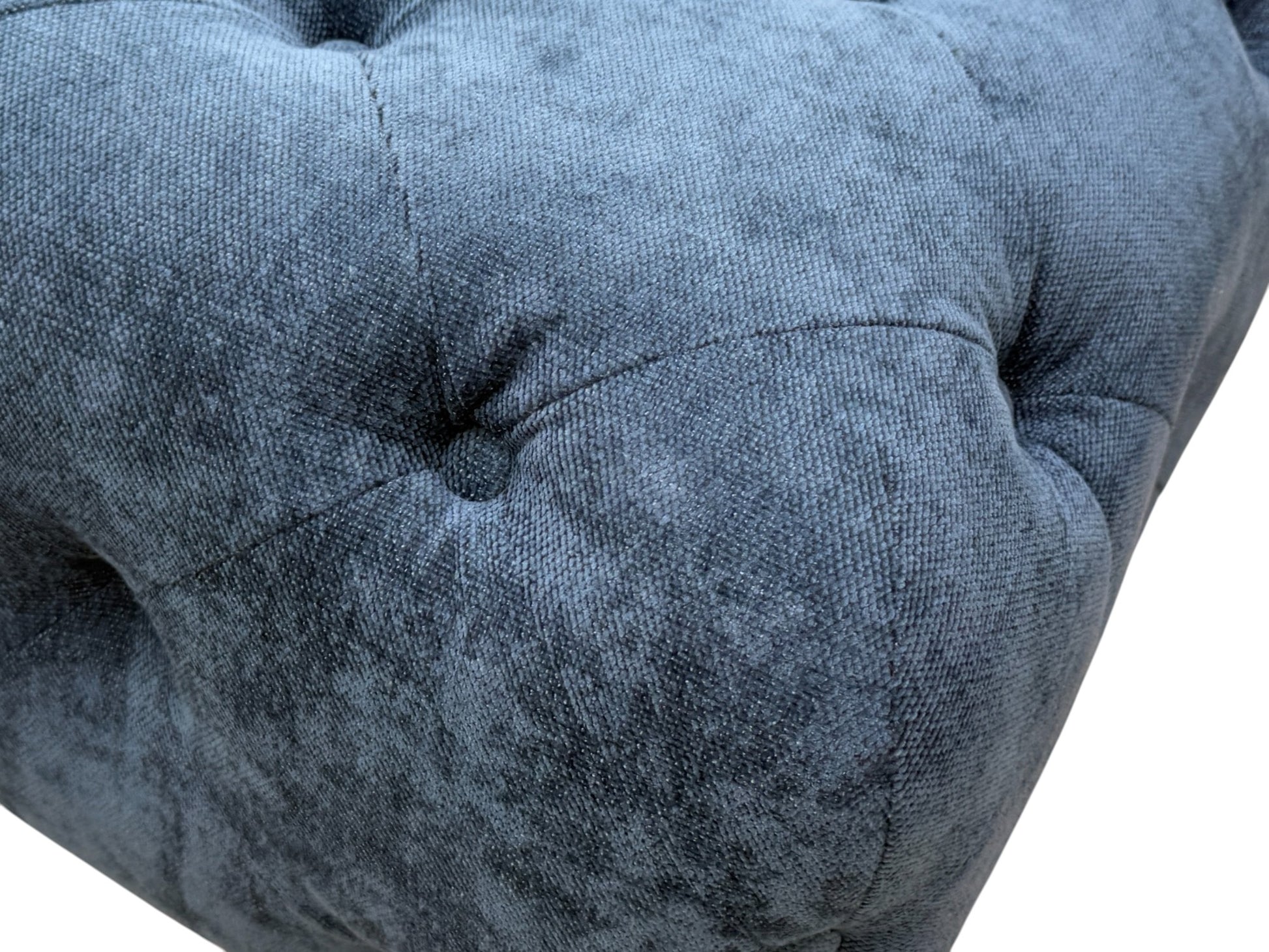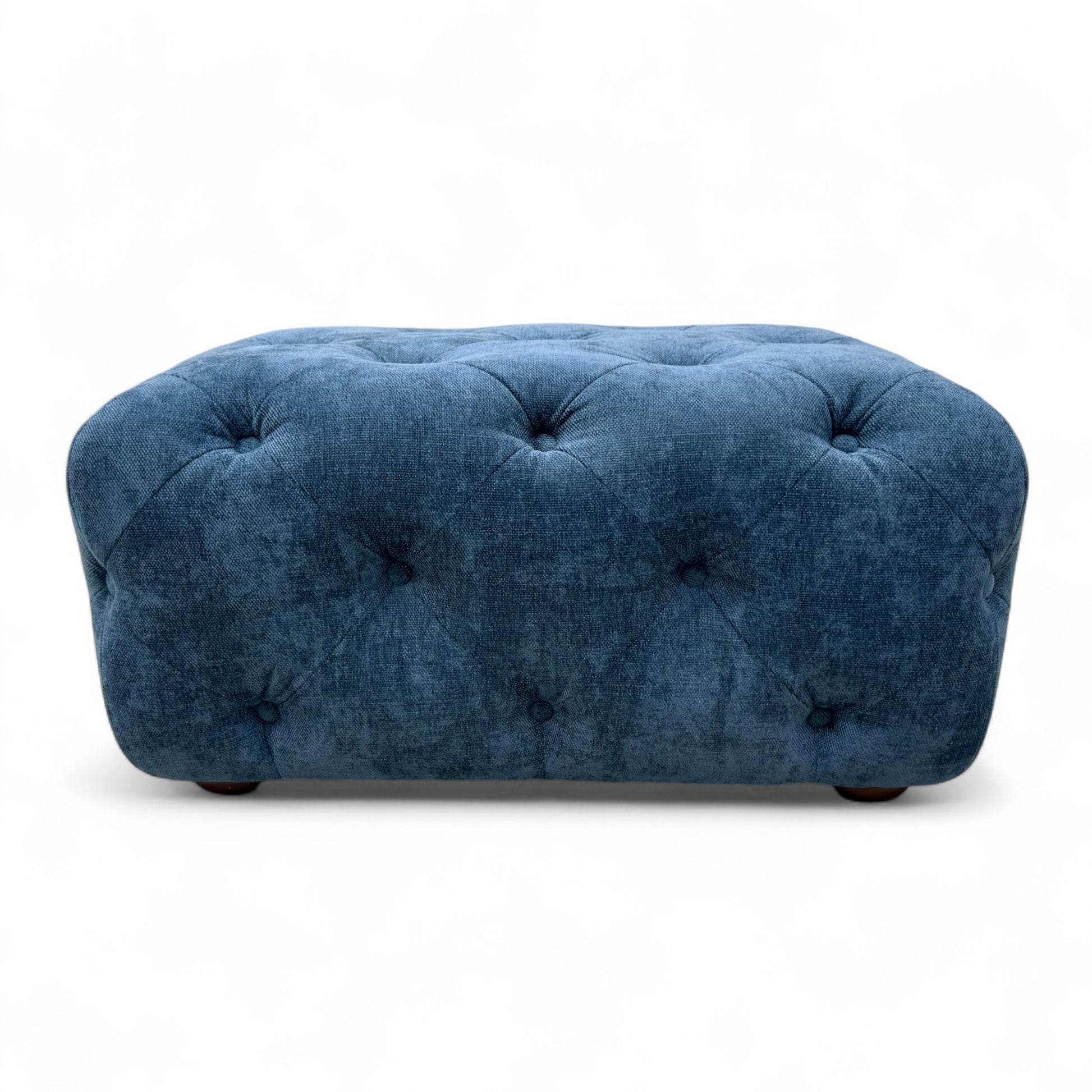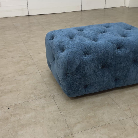 - The DFS 'Libertie' Banquette Footstool in Denim Catalina Button is a stylish and modern addition to any living room.