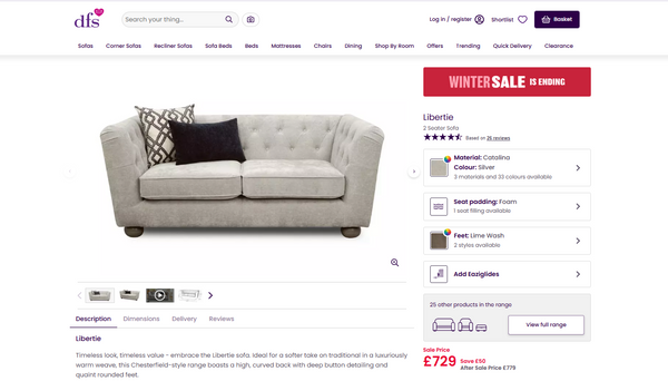 • This brand new sofa from DFS is a quality and fashionable choice for those looking to update their living space.