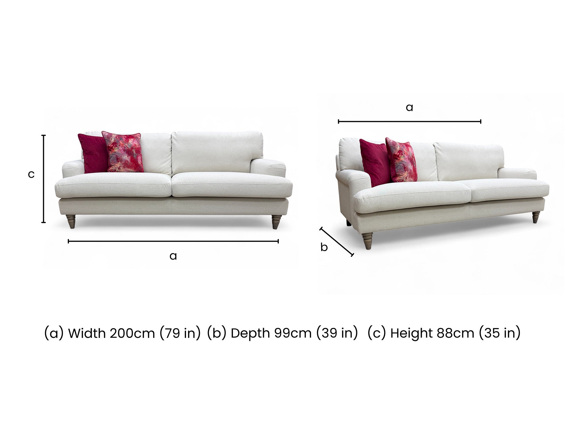 The 'Livie' Natural Livie Fabric 3 Seater Sofa combines contemporary design with durable craftsmanship. Upholstered in a soft, natural-toned Livie fabric, it offers both comfort and style. Its sturdy frame and spacious seating make it an ideal centerpiece for any living area, delivering reliable support and inviting relaxation for up to three people. Perfect for those seeking understated elegance and everyday usability in one piece.