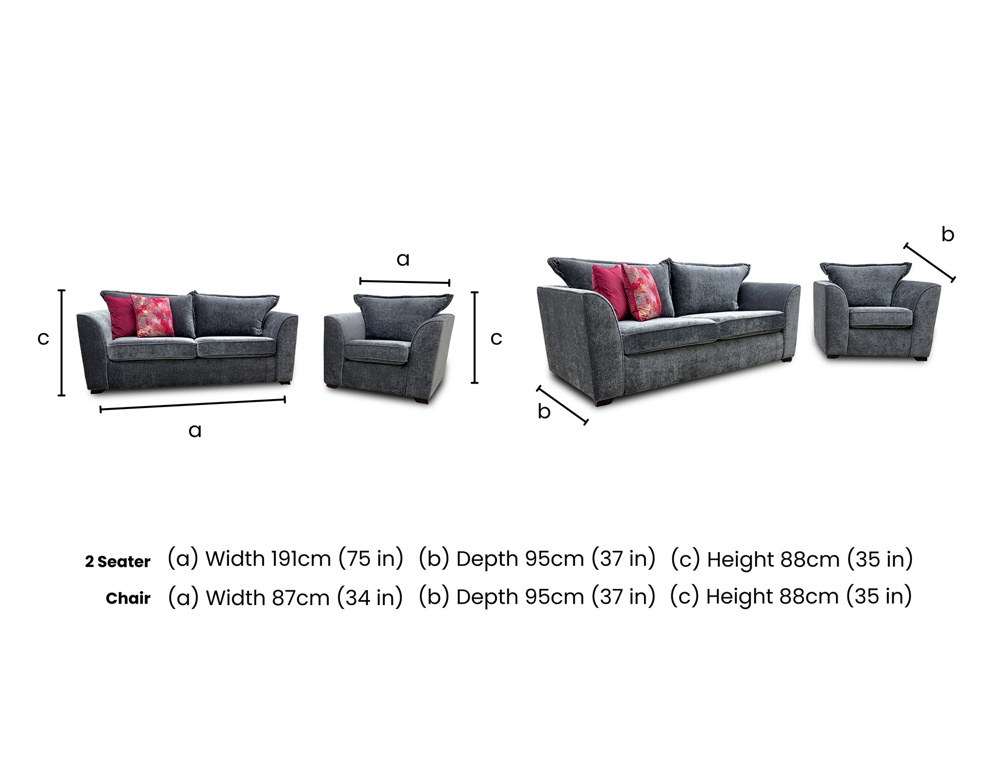 'Loleta' Charcoal Lorena Combination Formal Back 3 Seater Sofa + Armchair