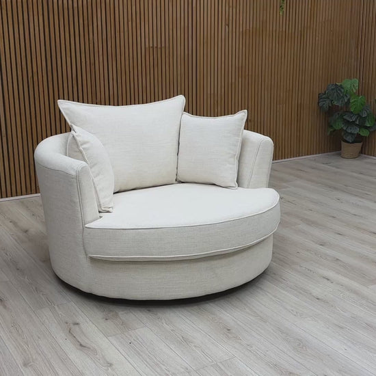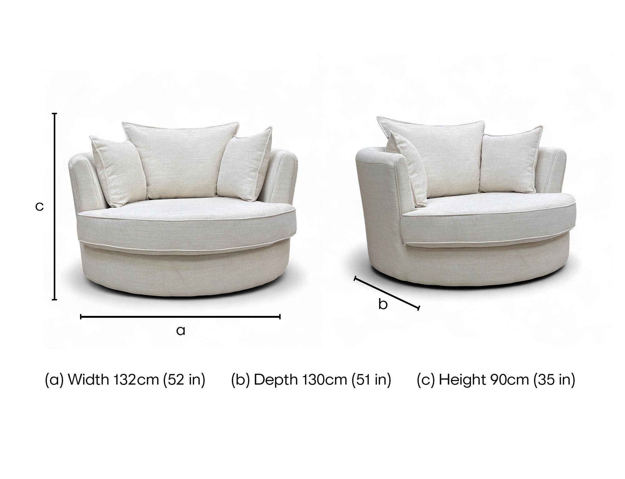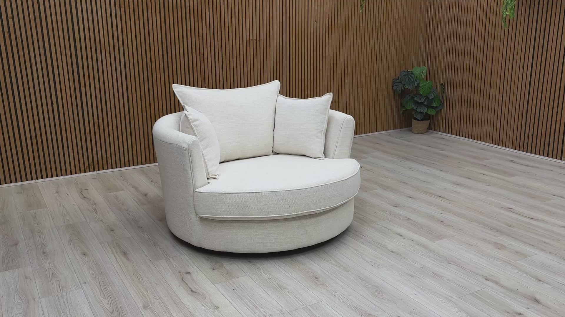 - The DFS 'Lorella' Swivel Chair in Cream Selway is a luxurious and contemporary addition to any living room, bedroom, or home office.