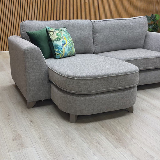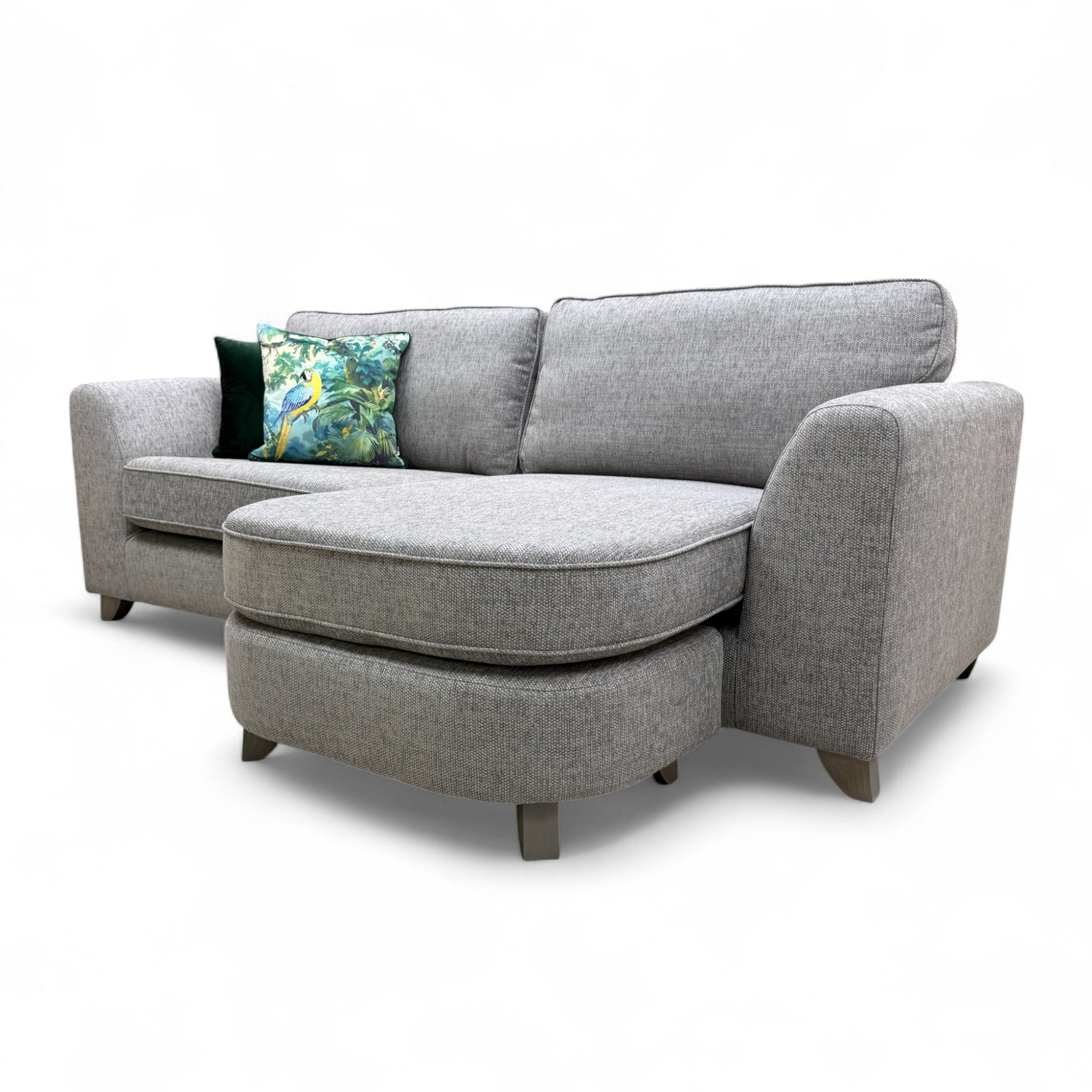- The DFS 'Lorella' 4 Seater Sofa Lounger Chaise in Grey Selway is a stylish and comfortable addition to any living room.