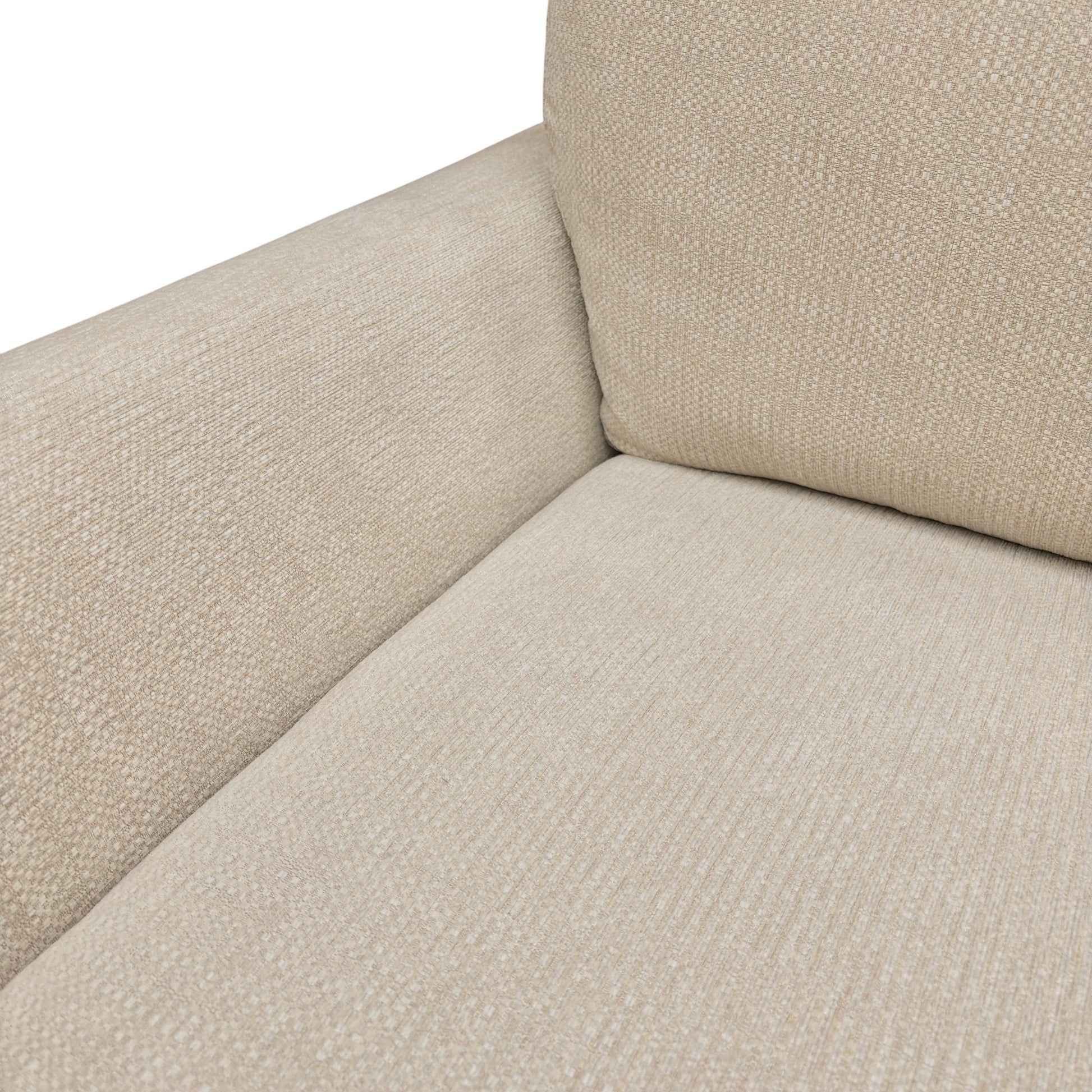 - The ‘Major’ 3 seater sofa in light cream weave fabric features a modern back design with sleek cushions for comfort.