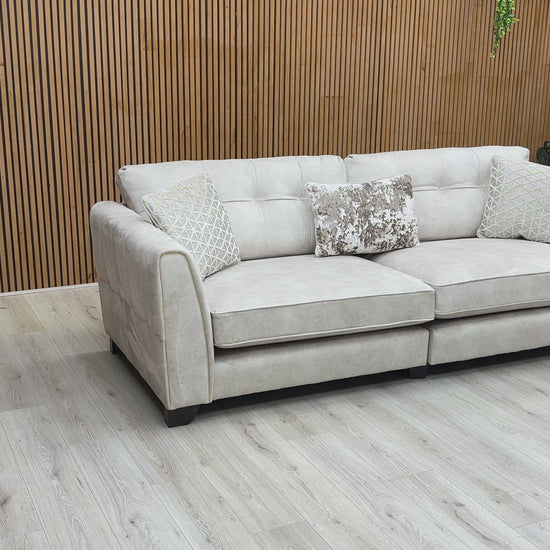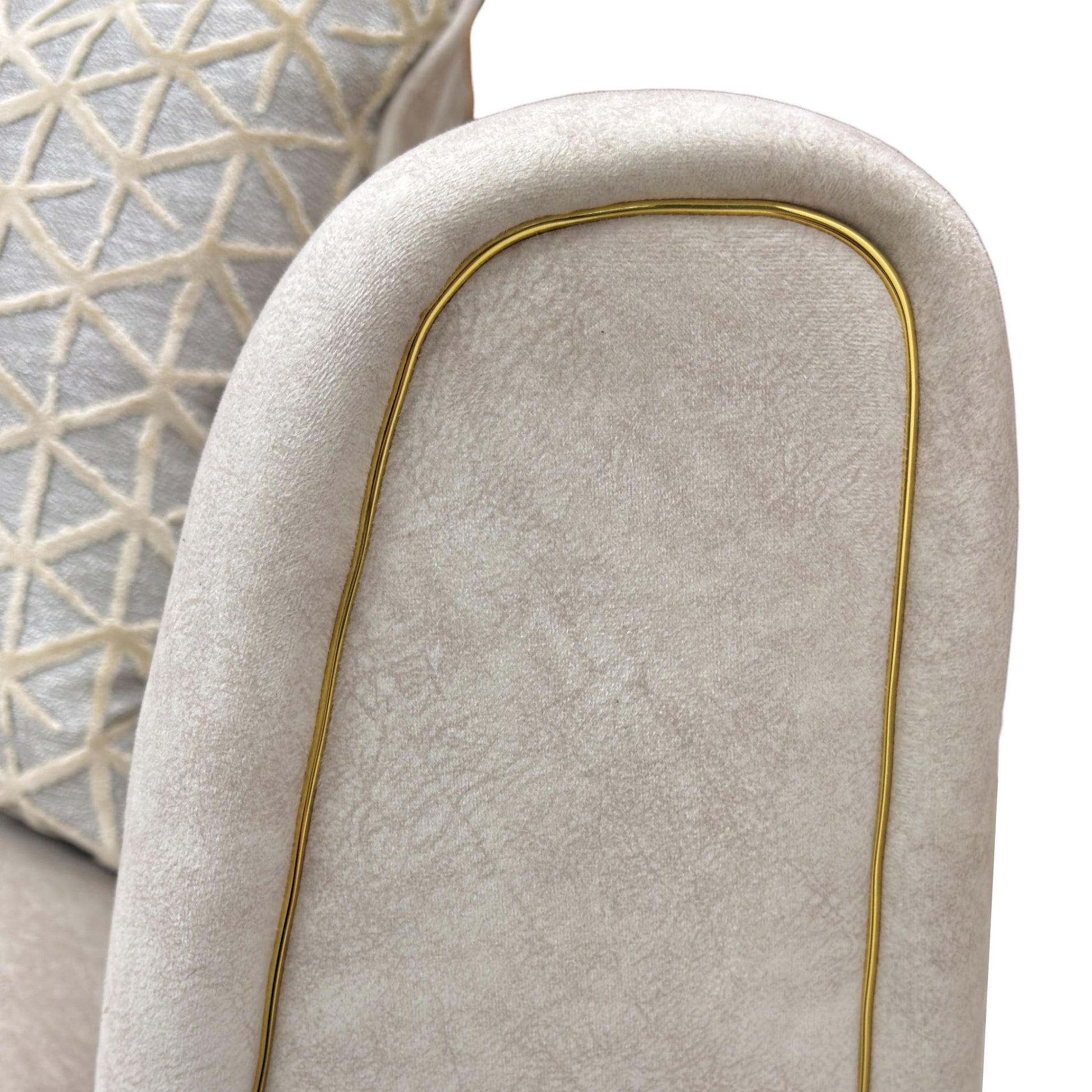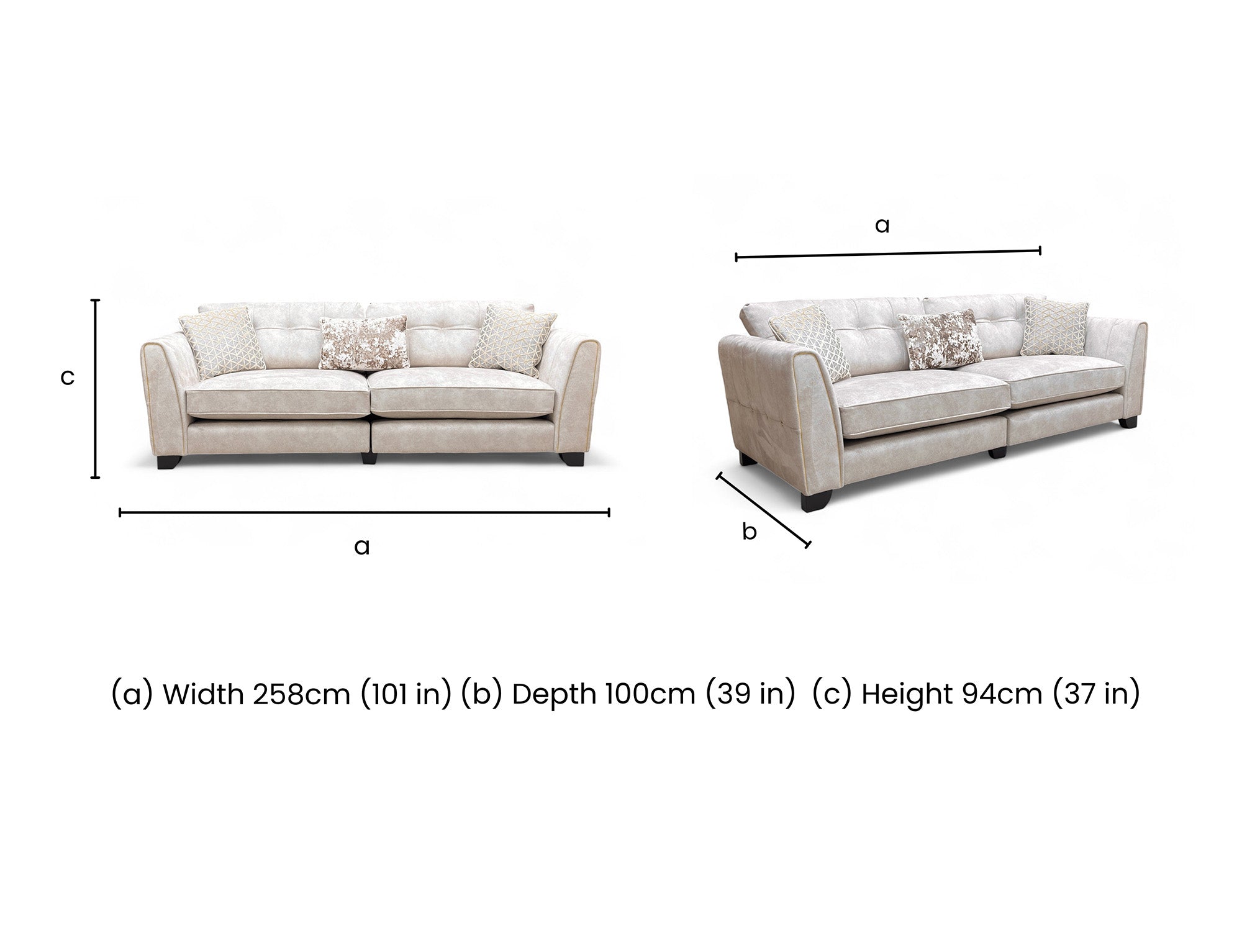 ‘Mariah’ Dapple Cream-Tri Brass Insert Velvet Classic Back 4 Seater Split Frame Sofa
