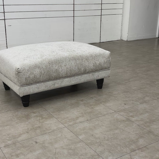 - Made from wood with a medium firmness level, this rectangular footstool features a solid natural chenille fabric upholstery, adding a contemporary touch to your home décor.