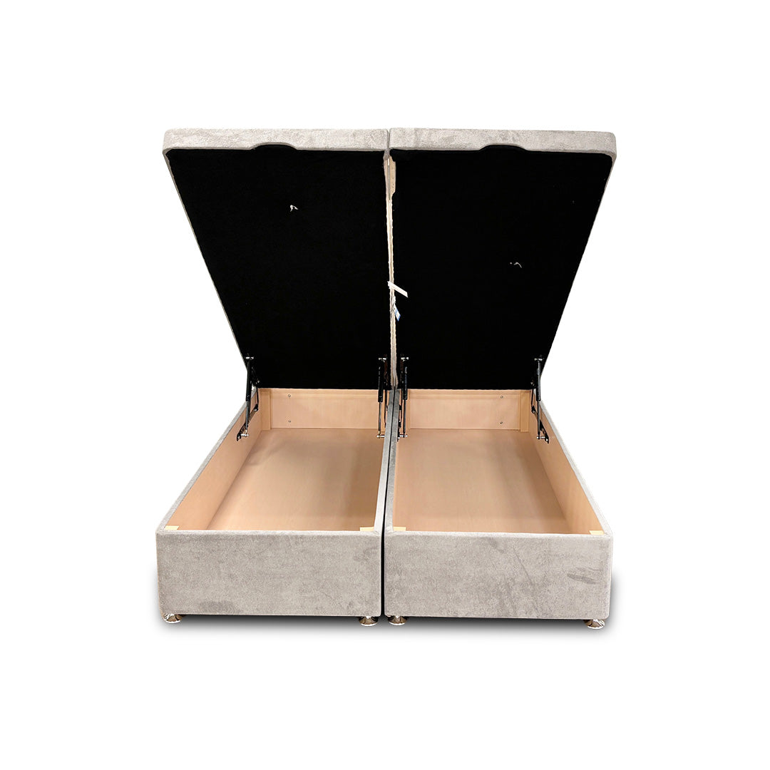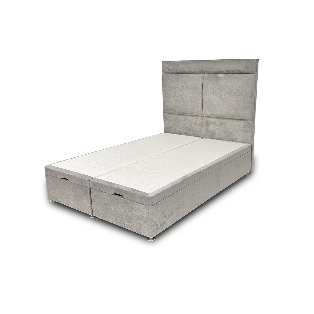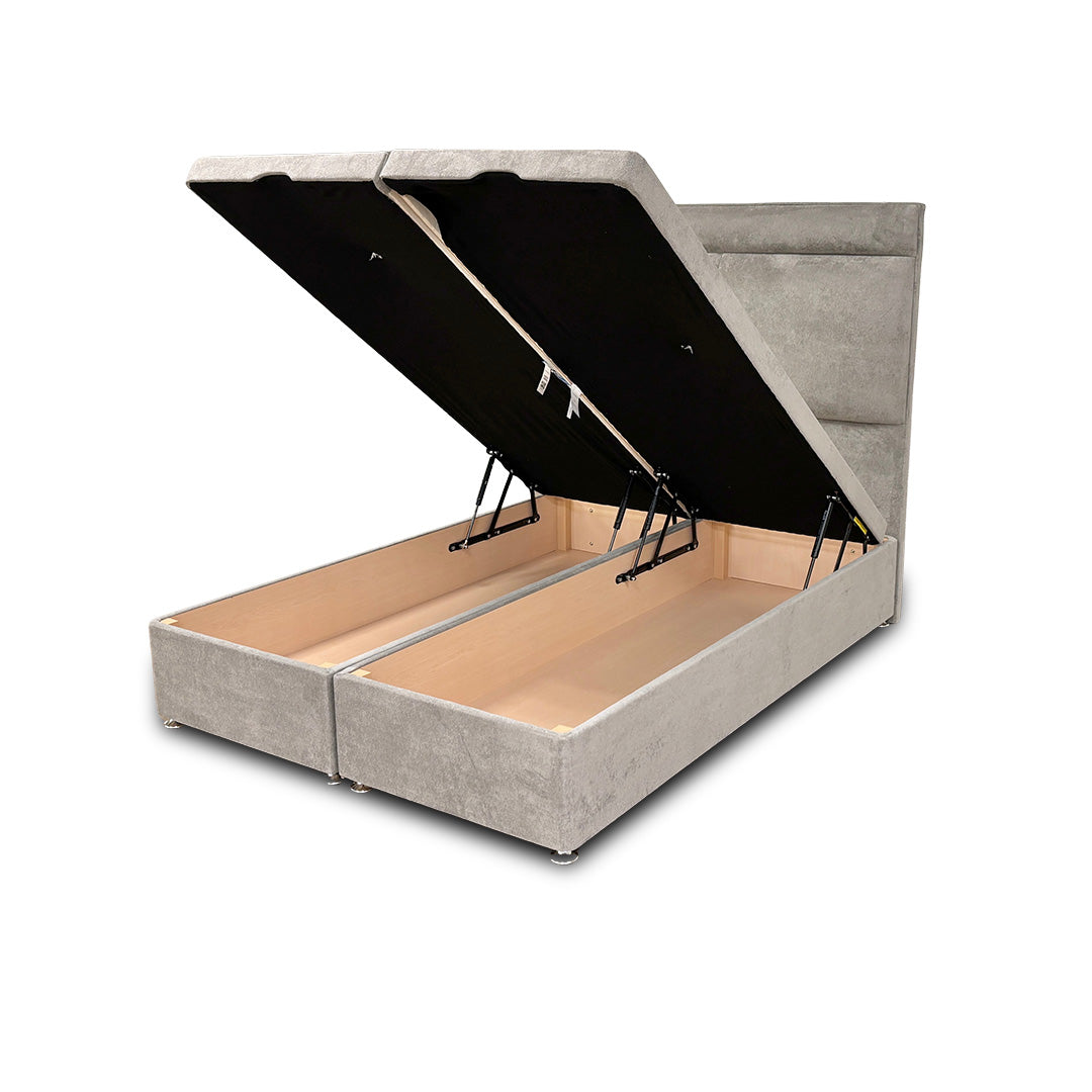 ‘Milan' Nickel Fabric Floor Standing Headboard + Double Ottoman End Lift Base - Double