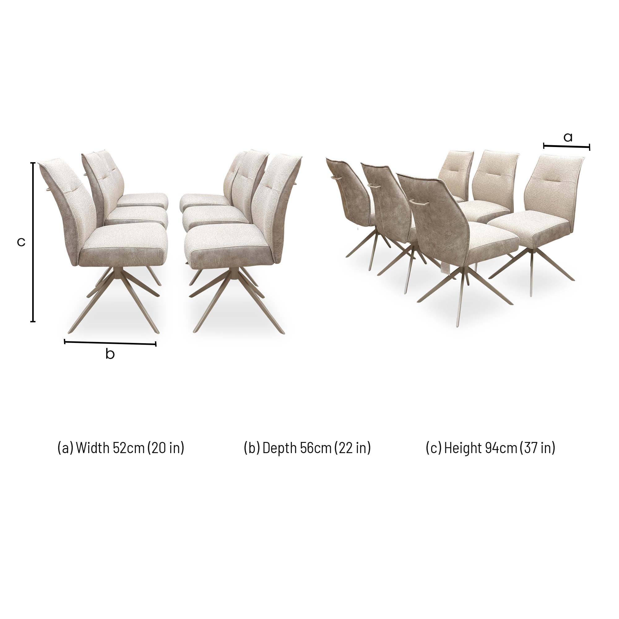 ‘Mirage’ Neutral Fabric Swivel Armless Dining Chairs - Set of 6
