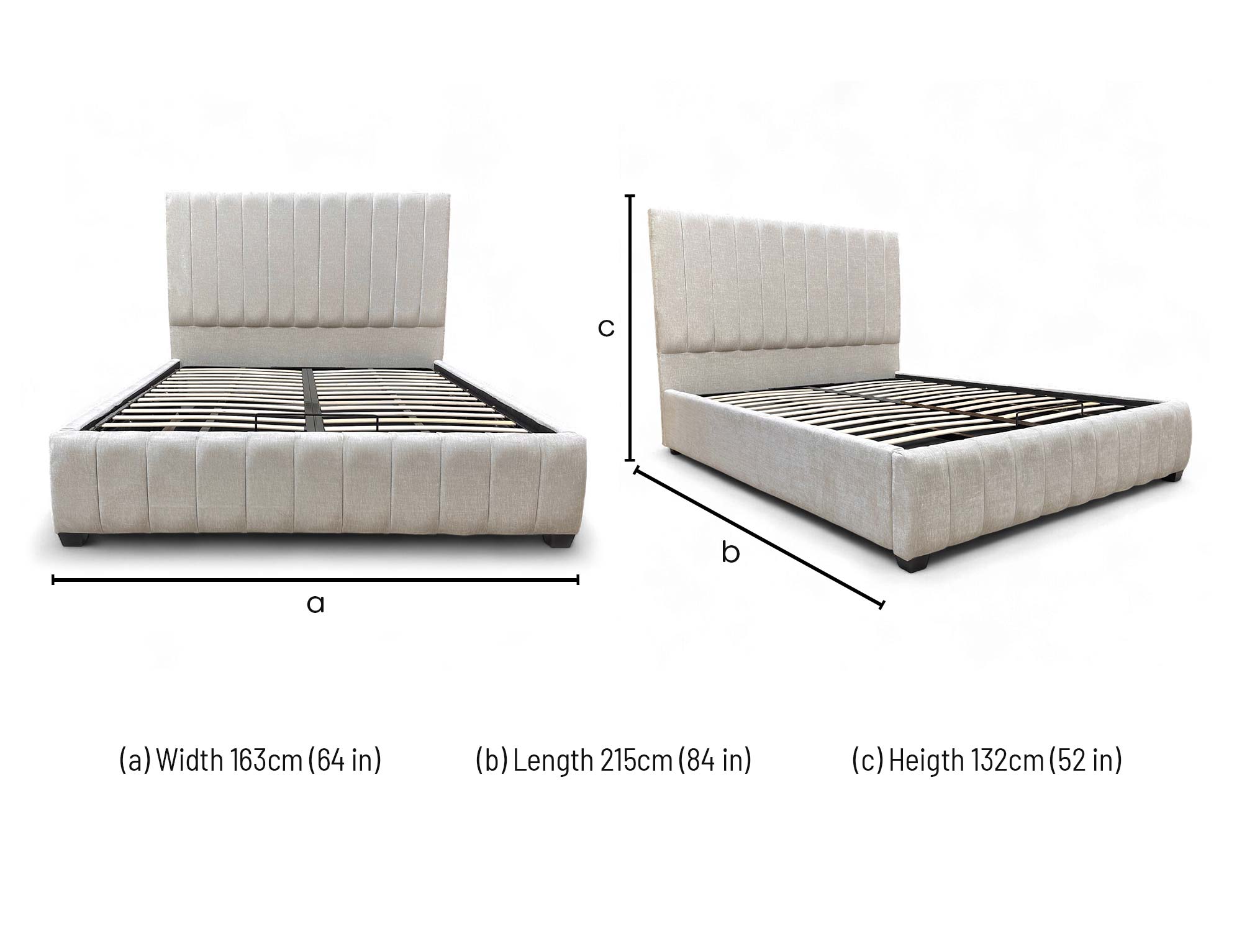 ‘Miranda’ Kashmir Chalk Fabric 133cm Headboard Manual Ottoman Bed Frame - King