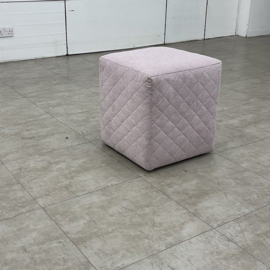 - The Fabb 'Molly' Cube Footstool in Blush Fabric is a stylish and comfortable addition to any living room.