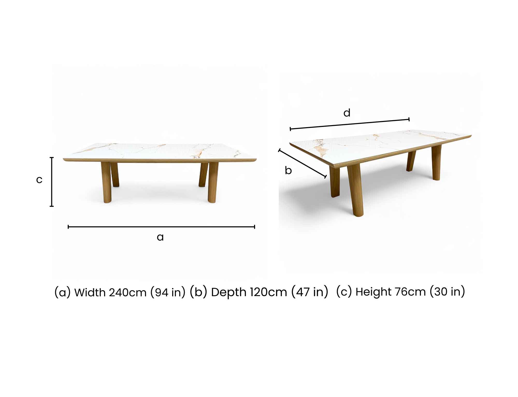 'Montreale' Marble Effect Ceramic Top 240cm Fixed Dining Table with Solid Oak Legs