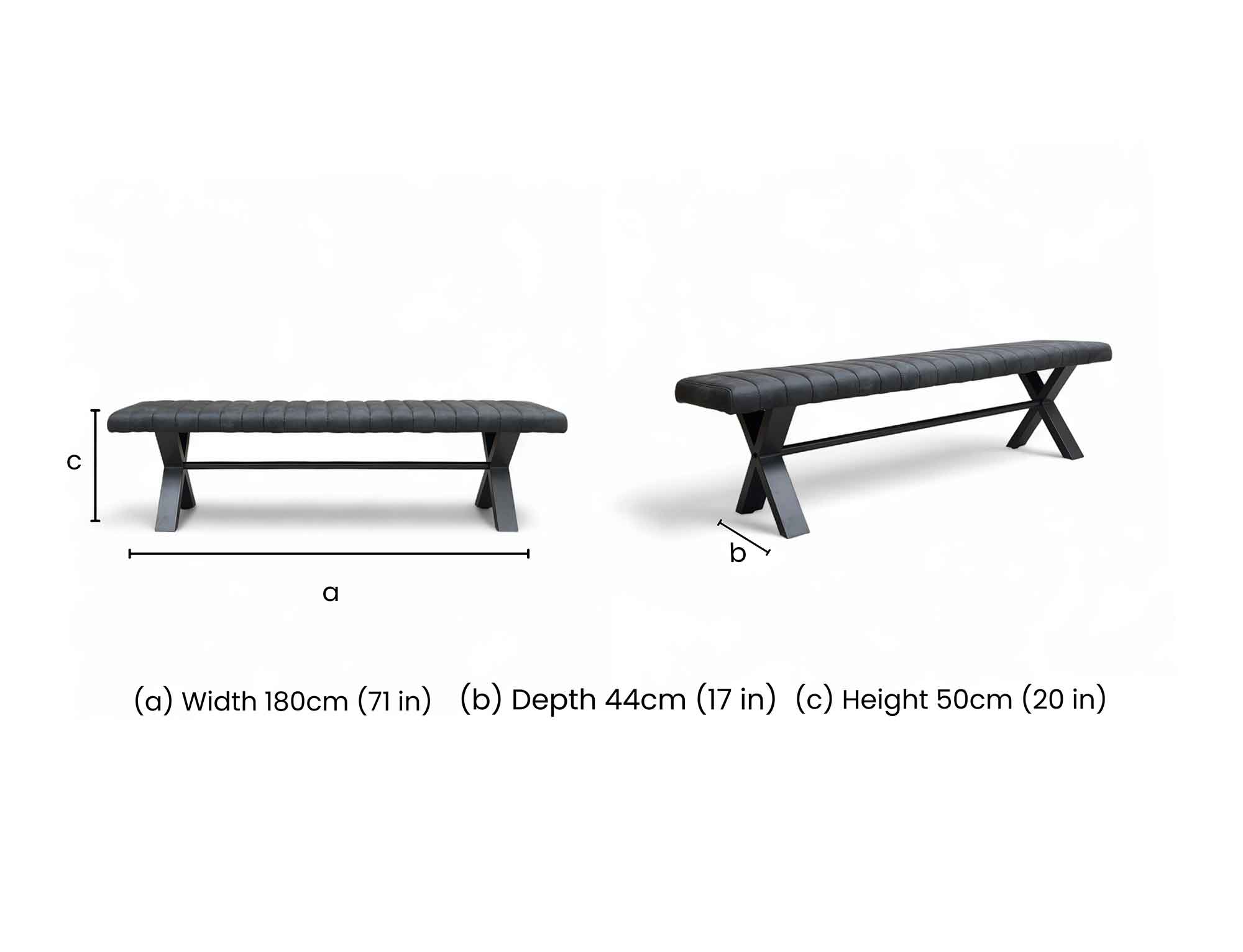 ‘Moon’ Charcoal Grey Faux Leather Dining Bench with Metal X-Shaped Legs