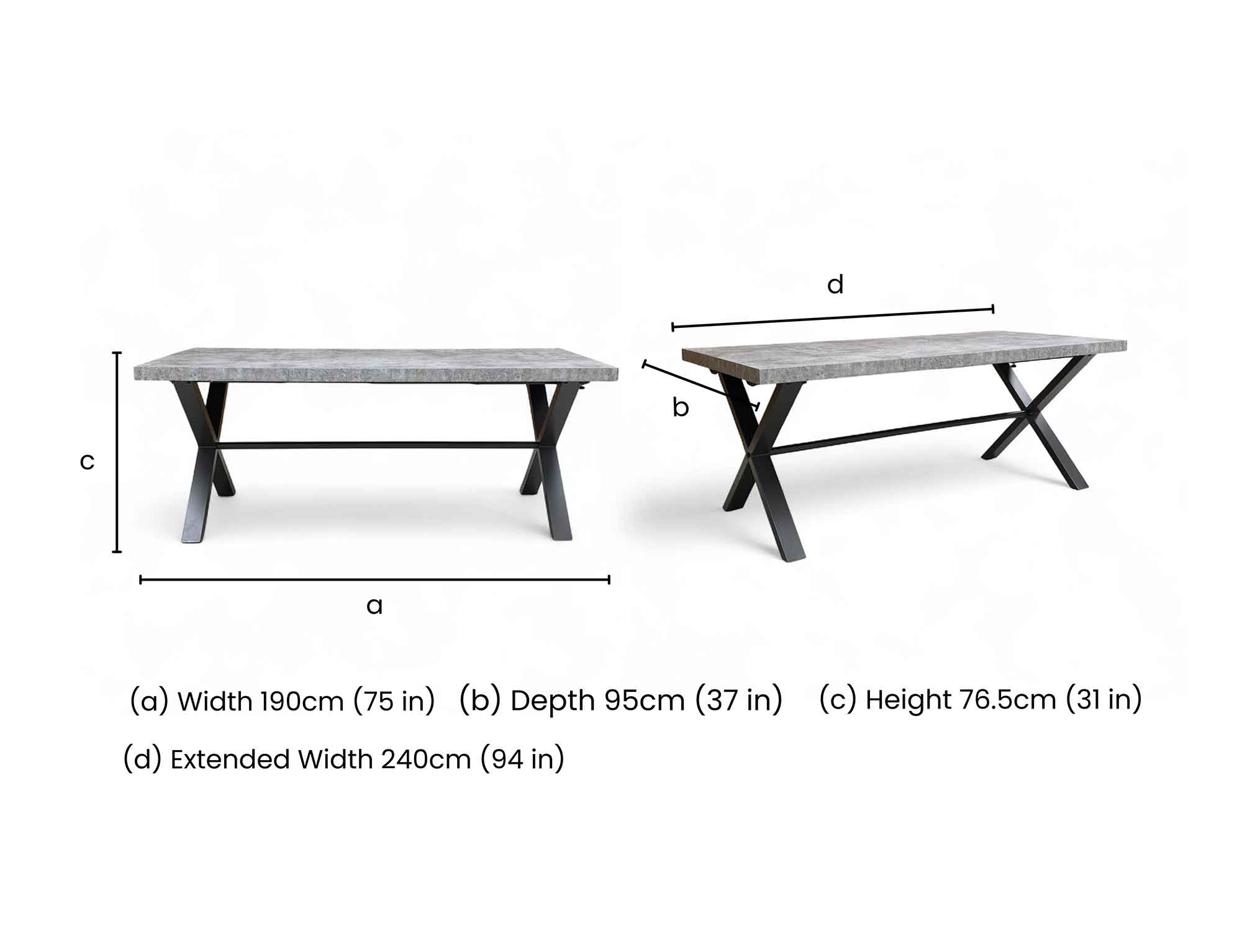 ‘Moon’ Grey Concrete-Look Large 190cm Dining Table with Extension Leaf