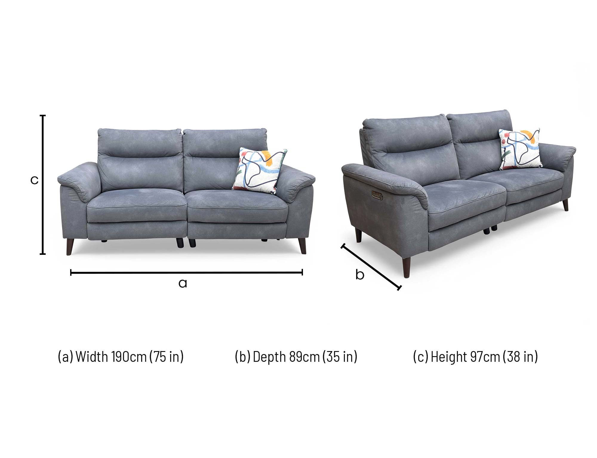 ‘Morgan’ Dexter Shadow Grey 43519 Velvet 3 Seater Power Recliner Sofa