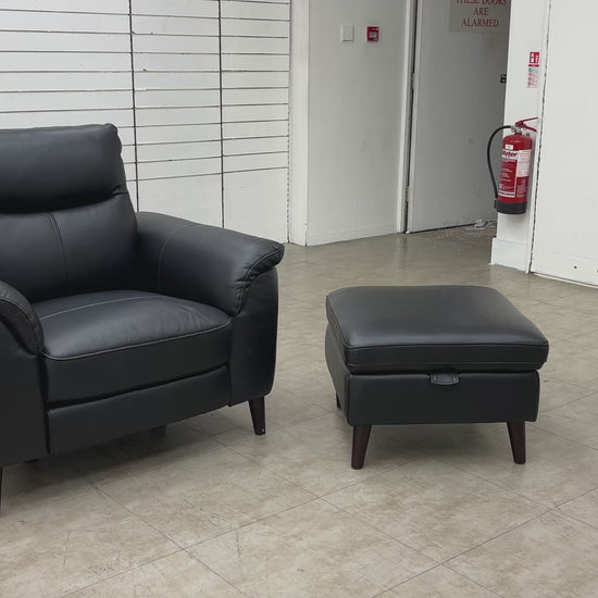 - The Furniture Village 'Morgan' Armchair Power Recliner in Black Leather with Footstool is a stylish and comfortable addition to any living room, bedroom, or home office/study.