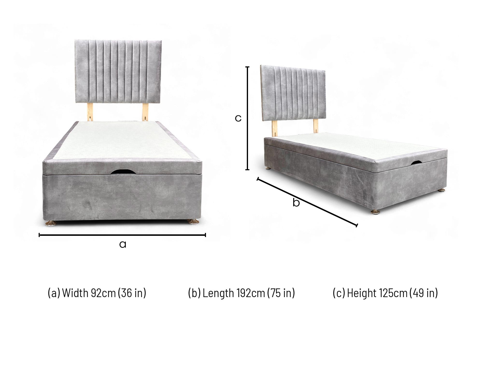 ‘Nero’ Lace Dolphin Velvet + End Lift Ottoman Divan Base - Single