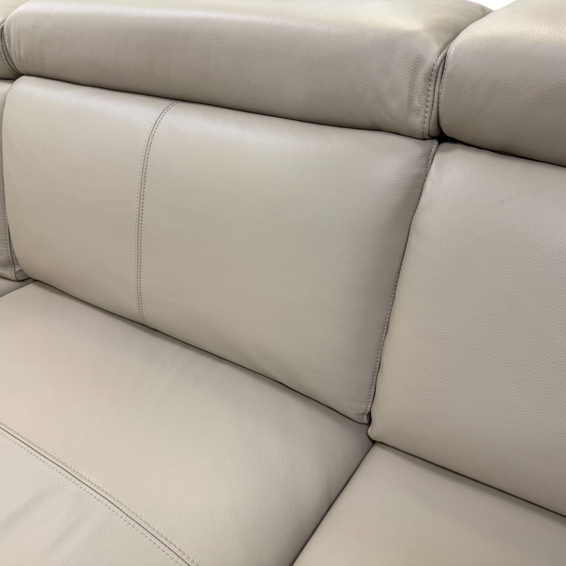- The 'Nico' Corner Sofa Power Recliner Headrest in Stone Leather is a contemporary/modern style furniture piece perfect for any living room.