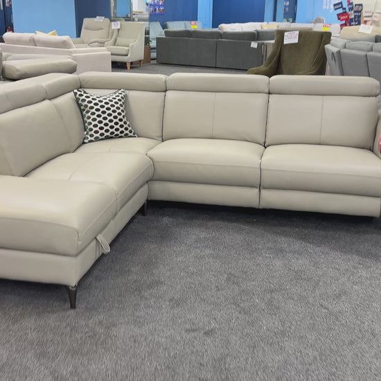 ‘Nico’ Stone Leather Power Recliner Left Hand Facing Chaise Corner Sofa with Storage and Adjustable Headrests