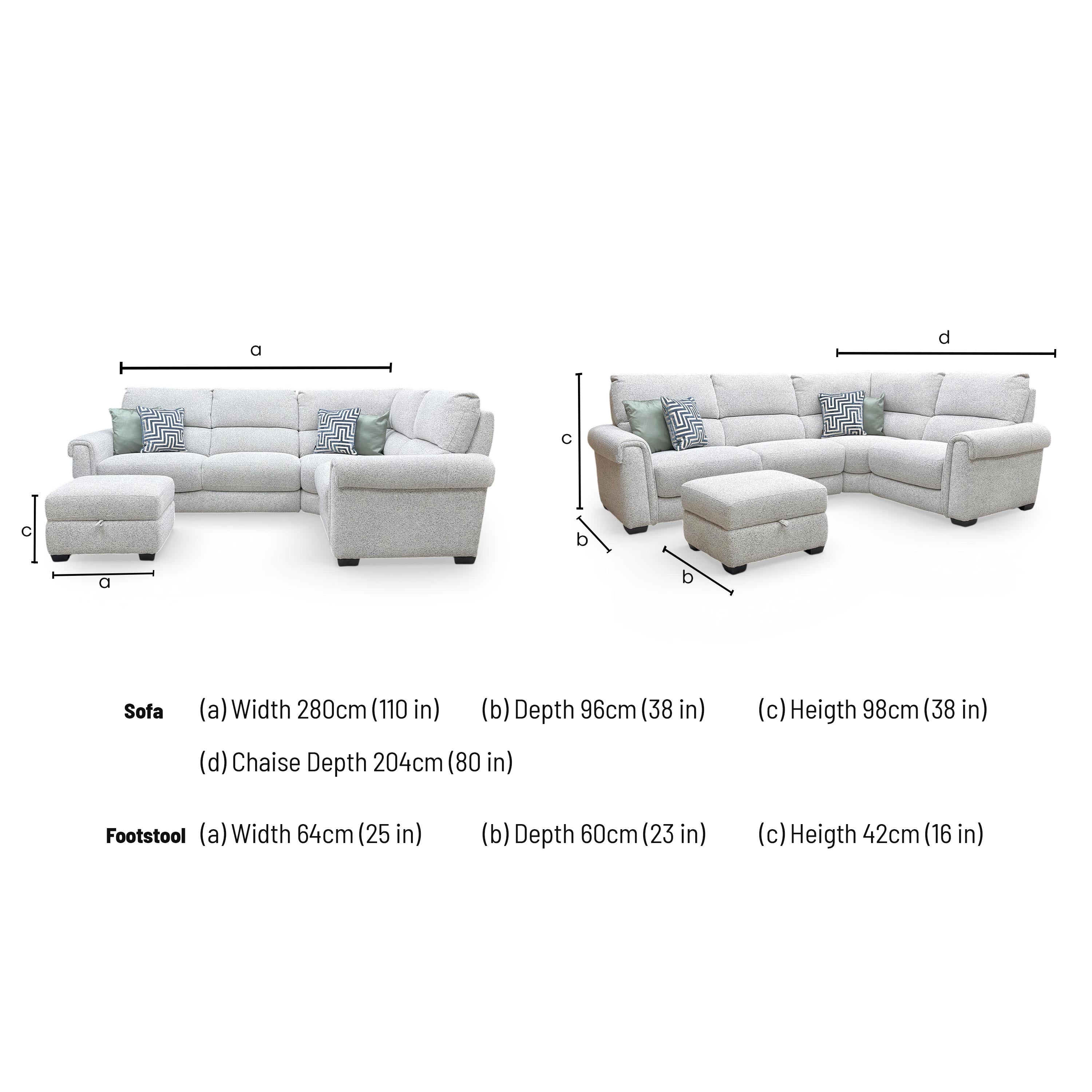 ‘Nixon’ Fab-Mil-R104 Oyster Fabric Right Hand Facing Corner Sofa + Storage Footstool