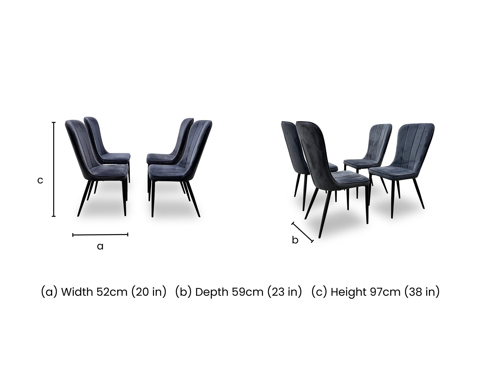 • Charcoal Velvet Dining Chairs are a set of 4 contemporary dining chairs in a sleek grey colour.