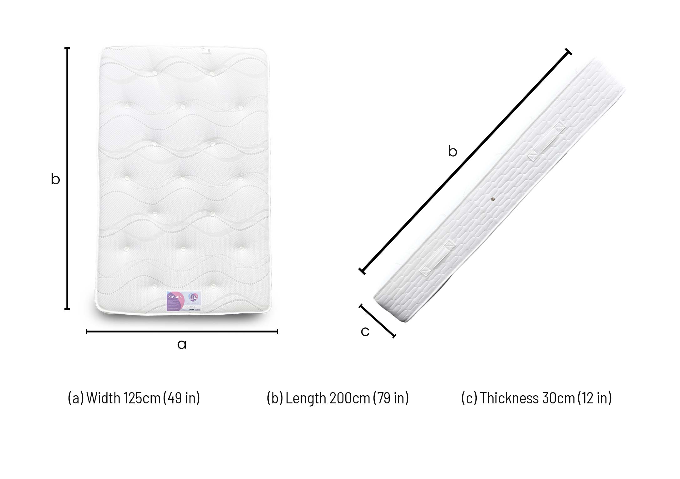• With a medium firmness level, this rectangle-shaped mattress features a solid white colour and a thickness of 30cm.