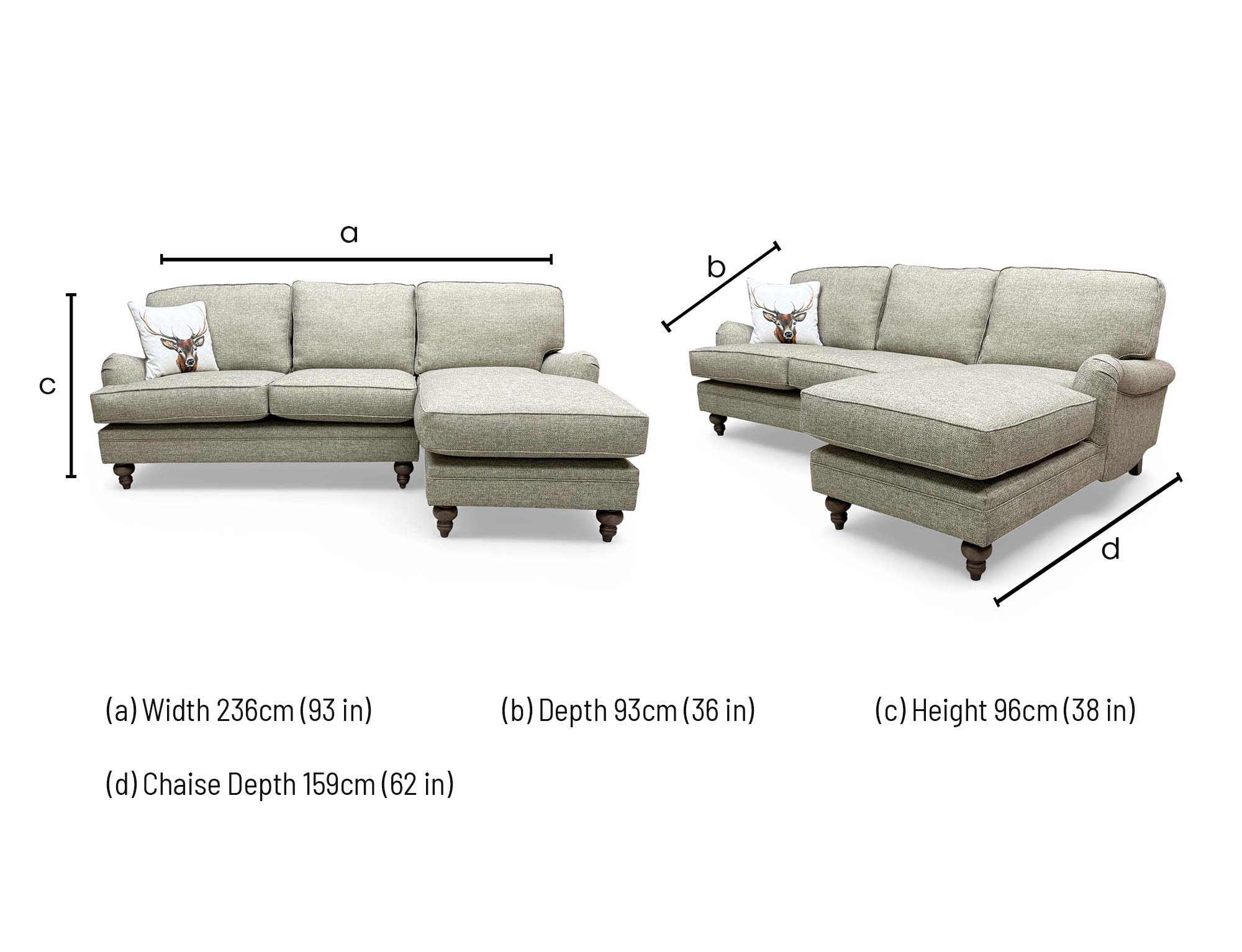 'Paddington' Fudge Brown Basket Weave Fabric 4 Seater Right Hand Facing Open End Chaise Corner Sofa