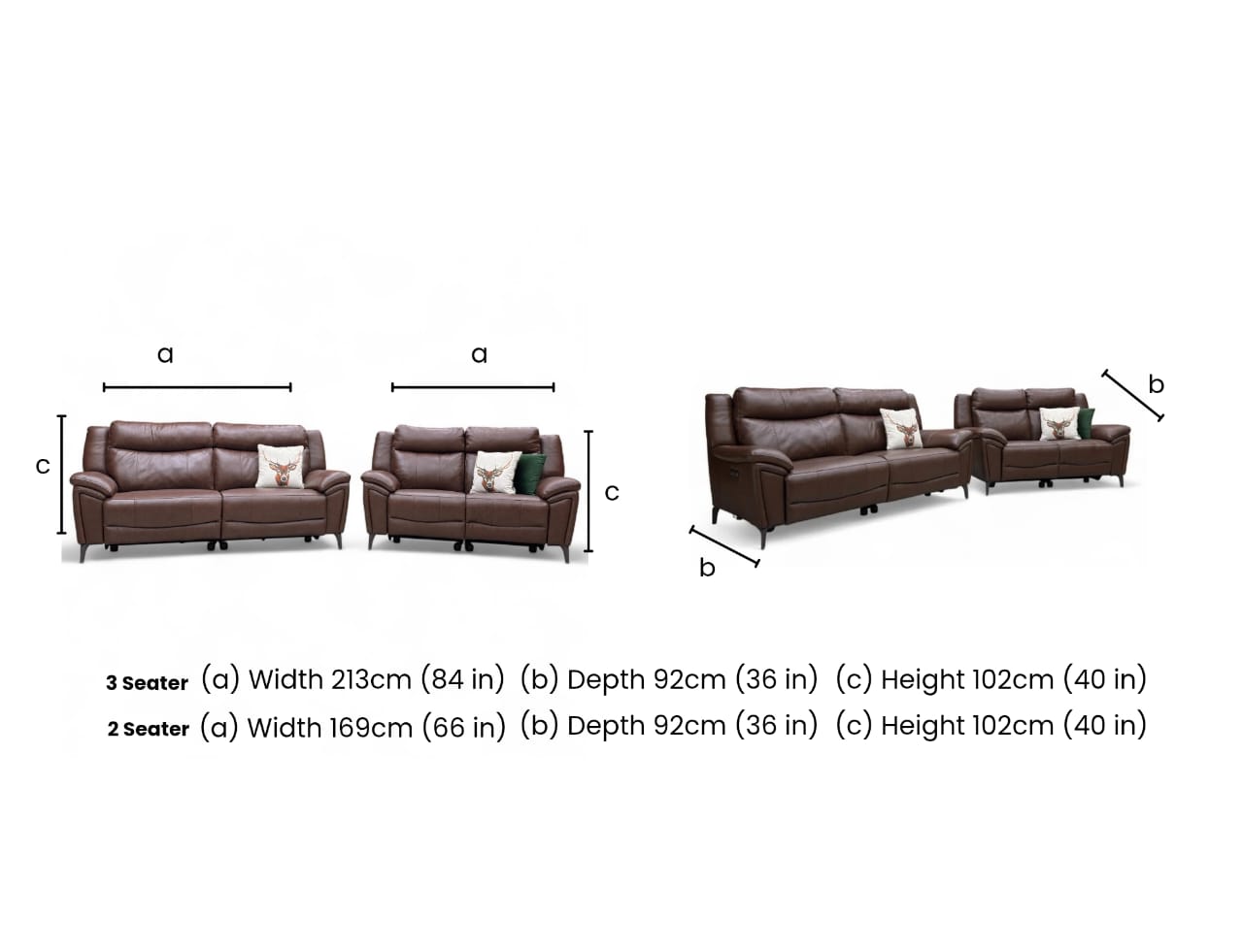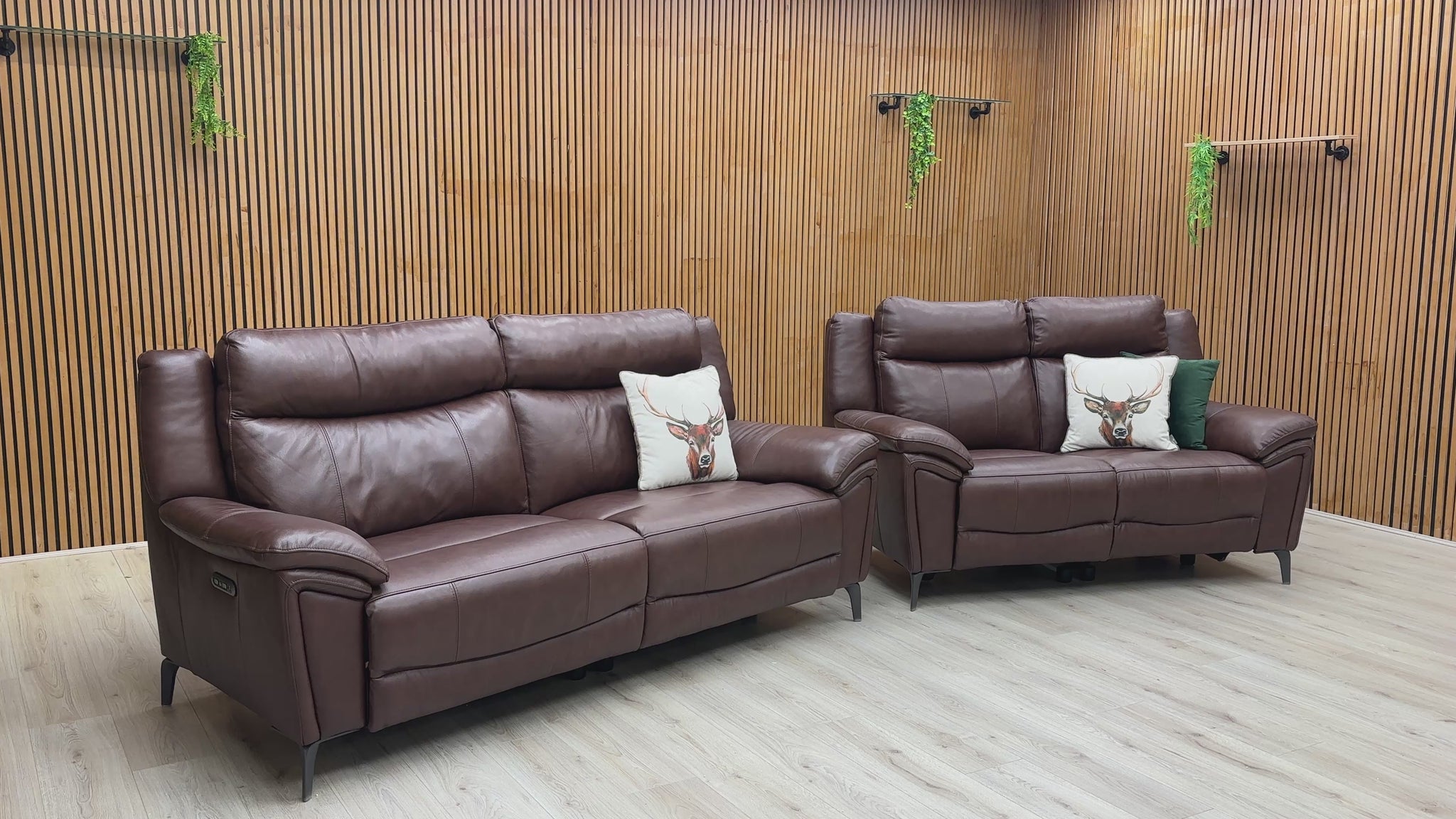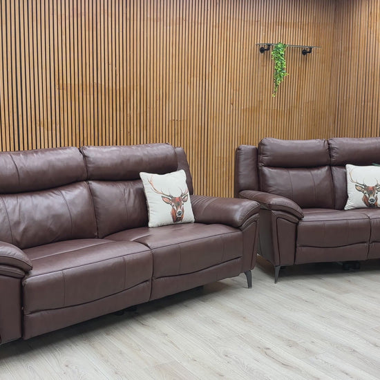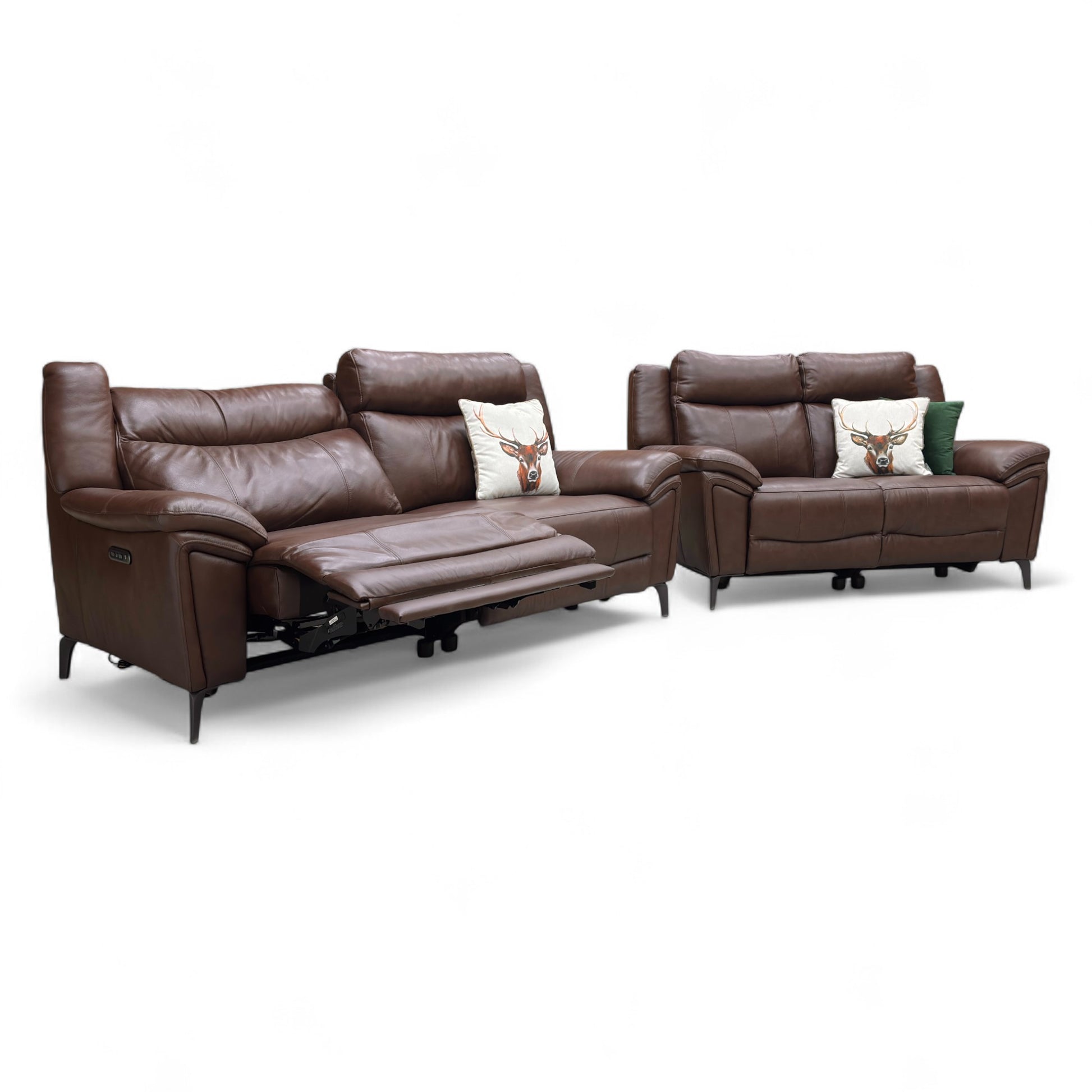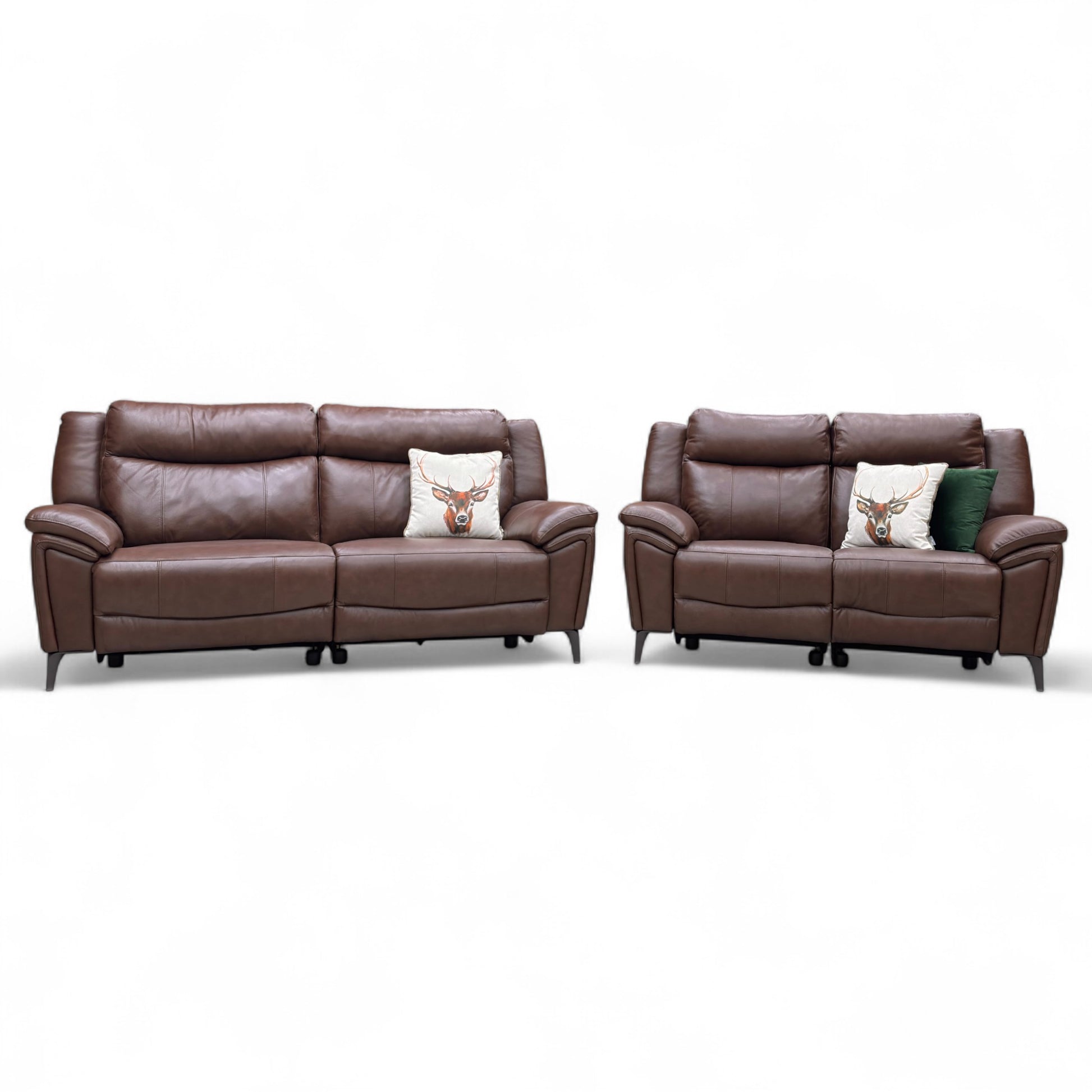 ‘Panache’ Chocolate Cat-60:08 Leather 3 Seater Power Recliner Sofa with Power Headrests + 2 Seater Power Recliner Sofa Set