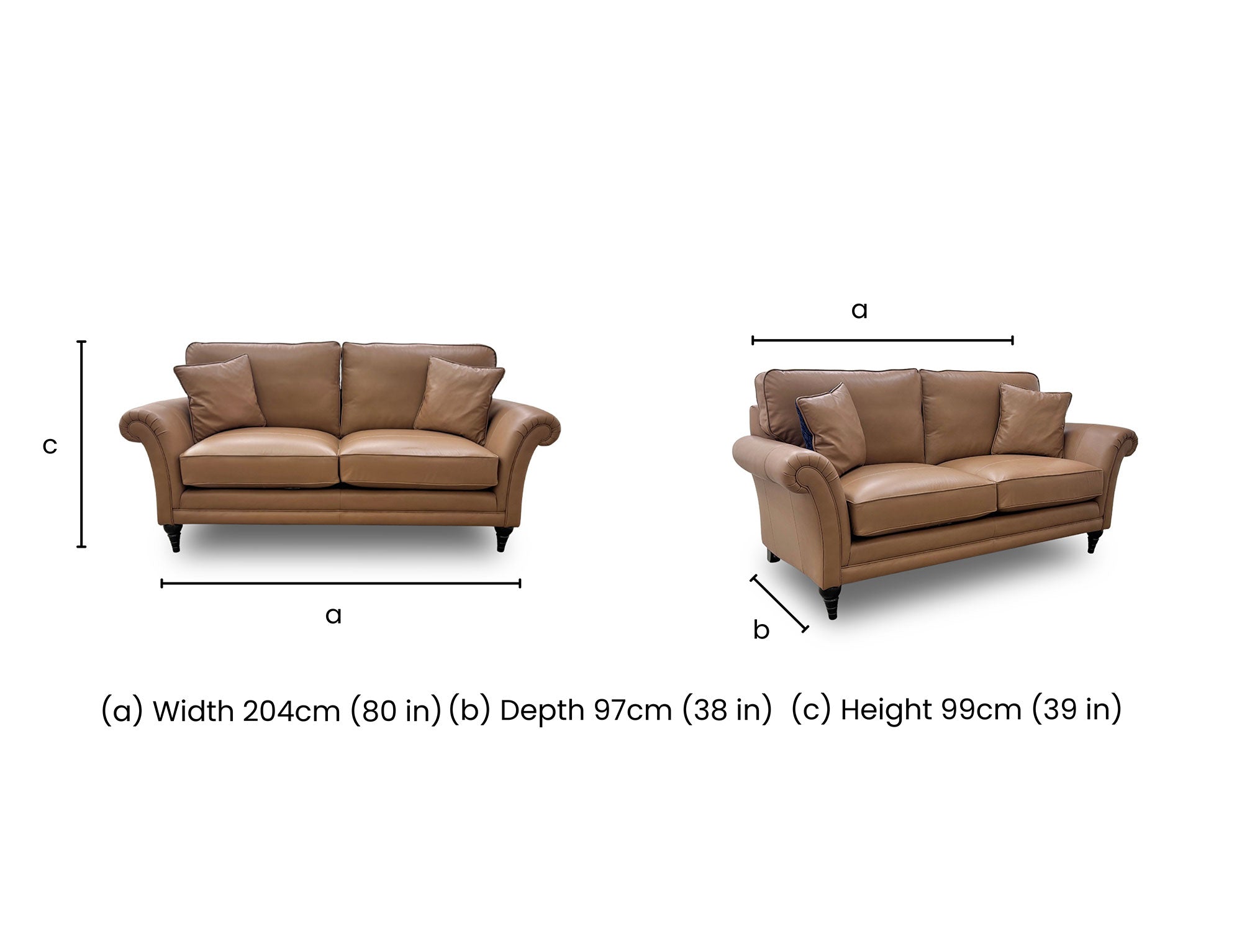 - Sweeping scroll arms in 100 % buttery-soft natural leather.