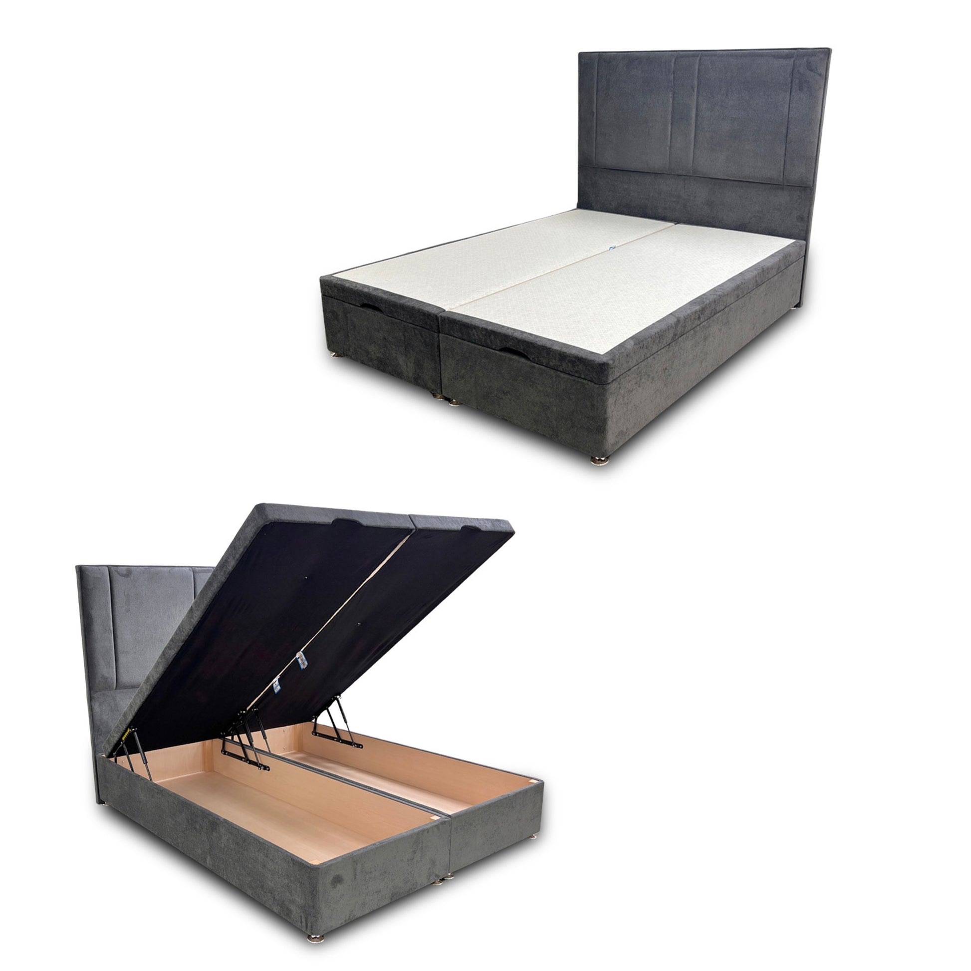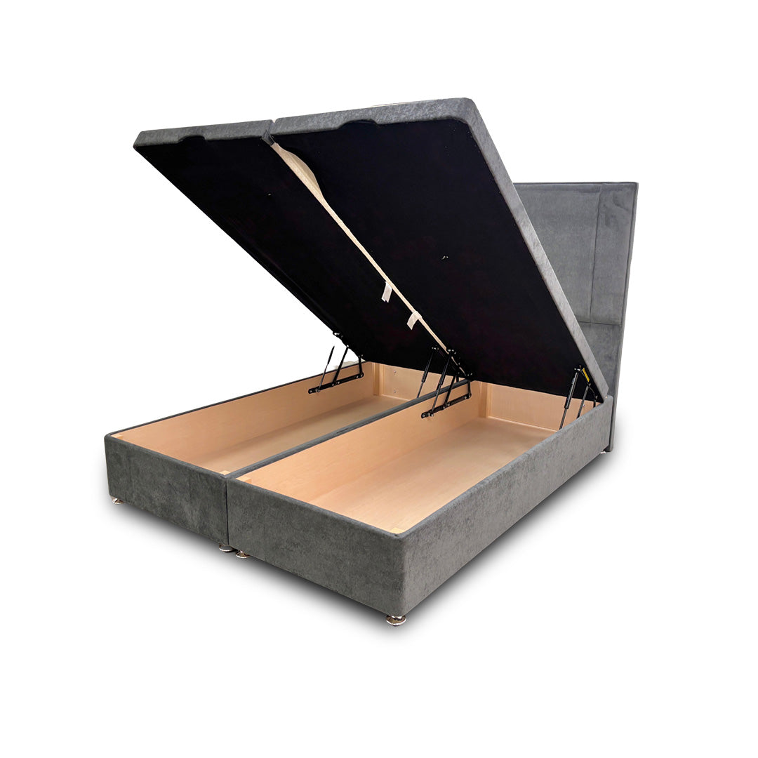 ‘Pegasus’ Milan Thunder Floor Standing Headboard + Double Ottoman End Lift Base - King