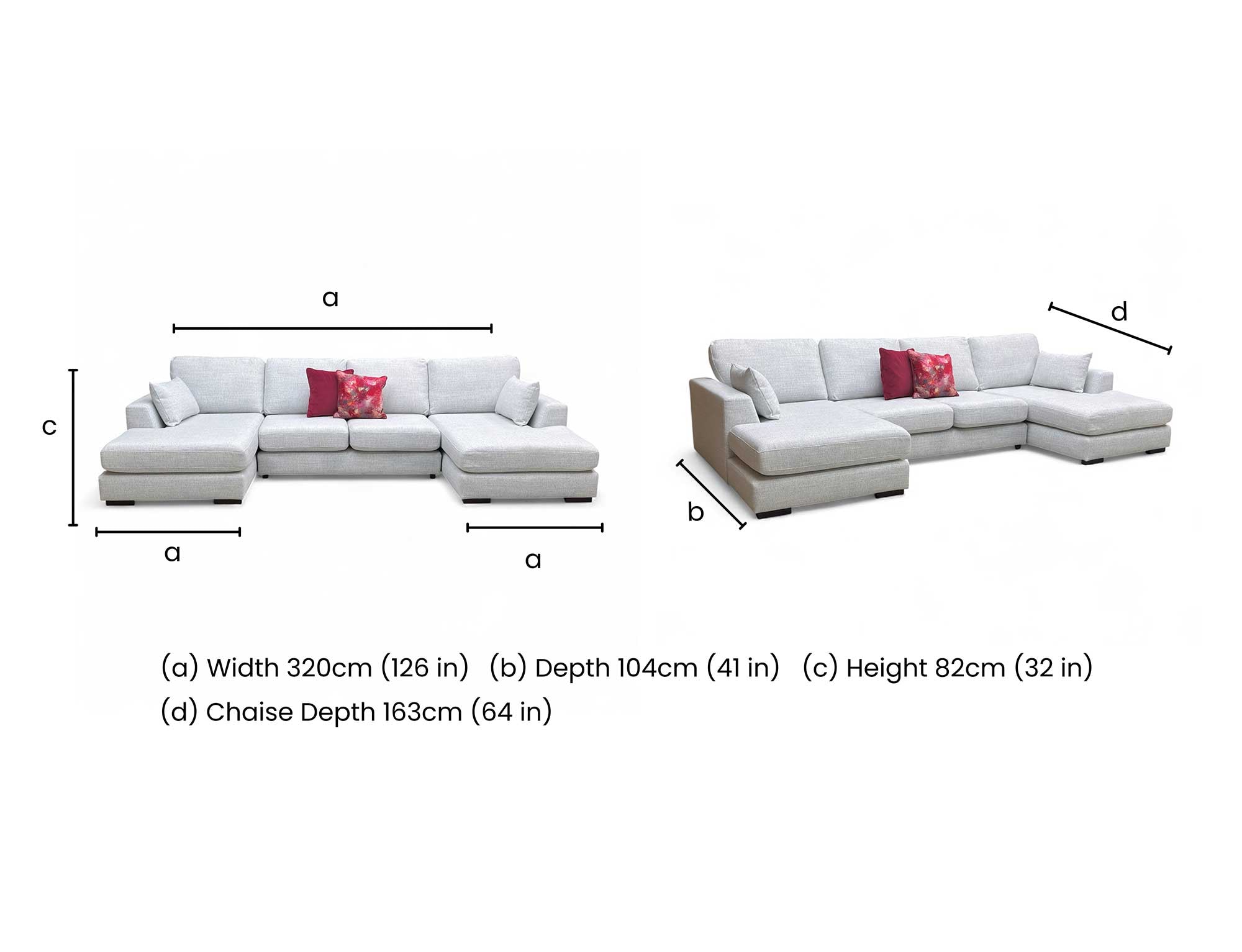 - The chaise sofa is 163cm in length, 319cm in width, and 86cm in height, making it a stylish and spacious addition to your home.