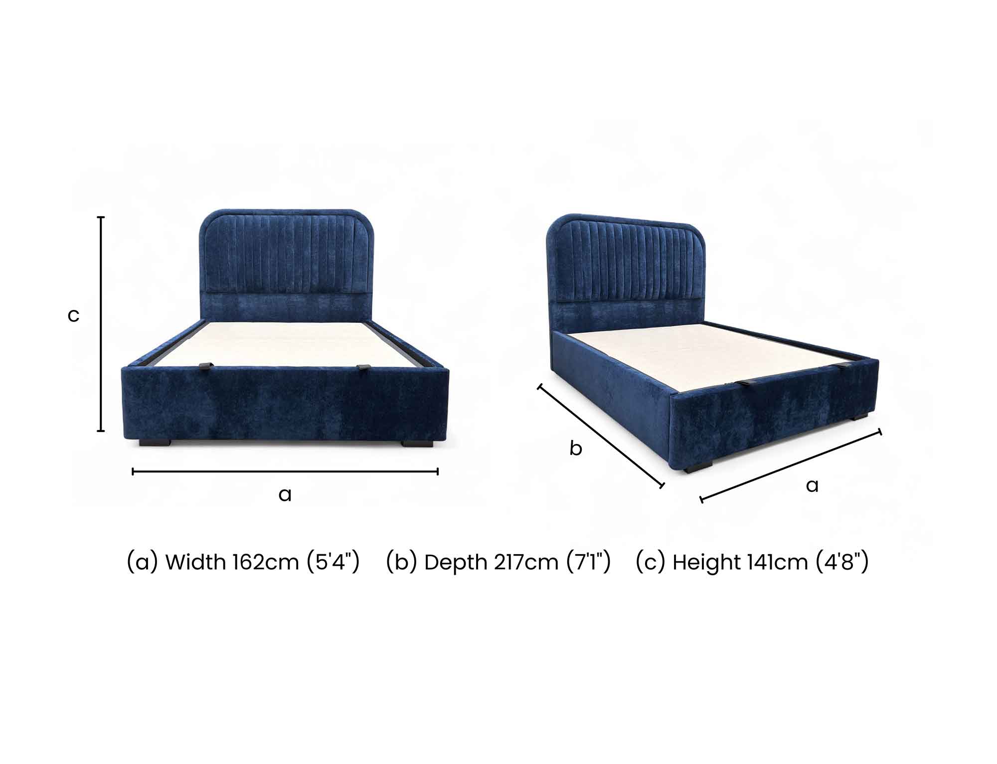 ‘Portland’ Designer Sapphire Fabric Floor Standing Headboard + End Lift Ottoman Bed Frame - King