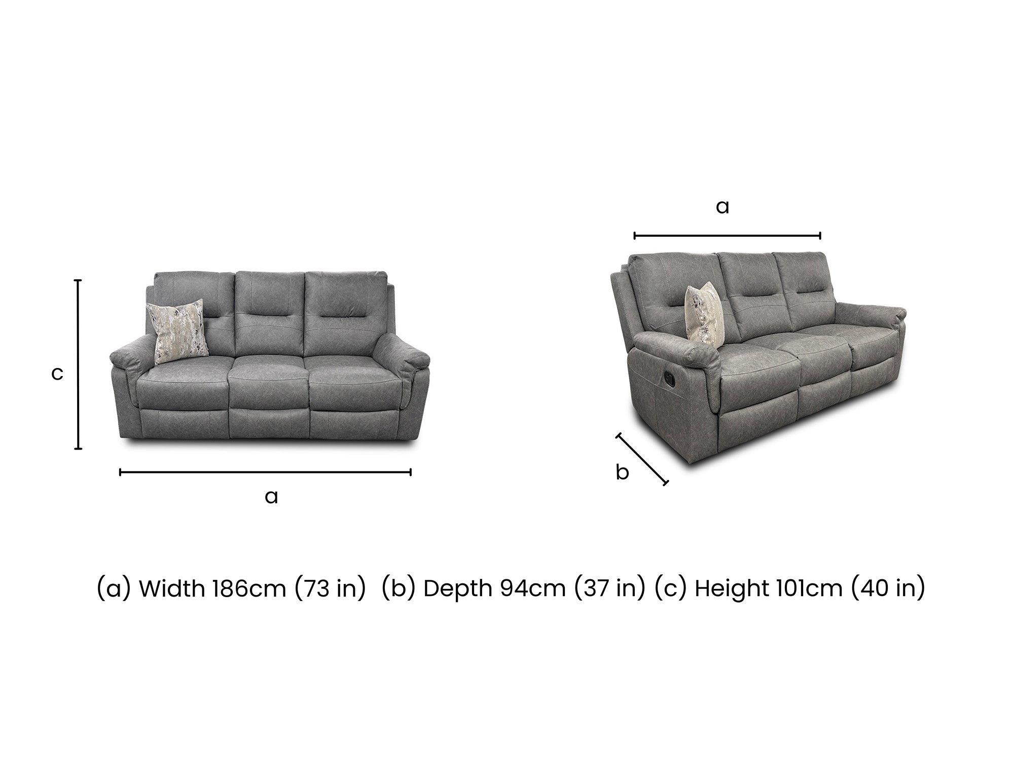 'Ranger' Grey Endurance Fabric Manual Recliner 3 Seater Sofa