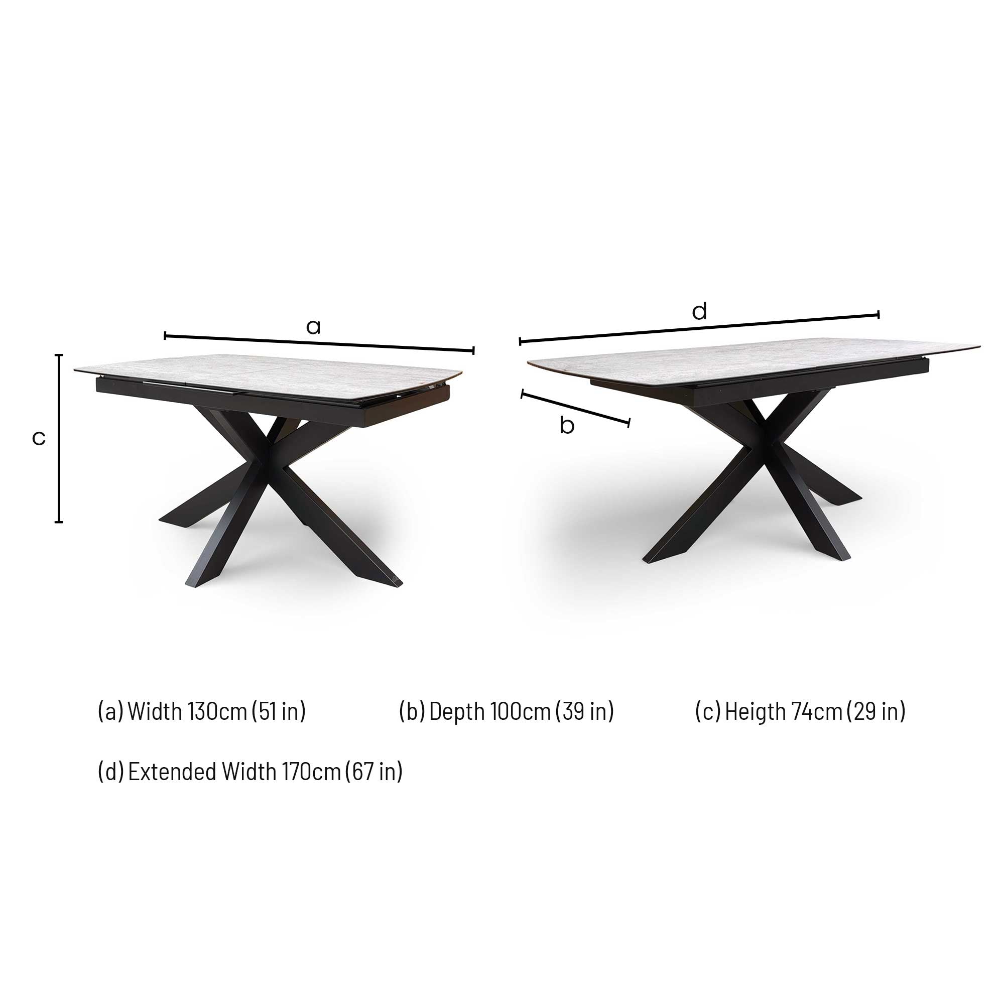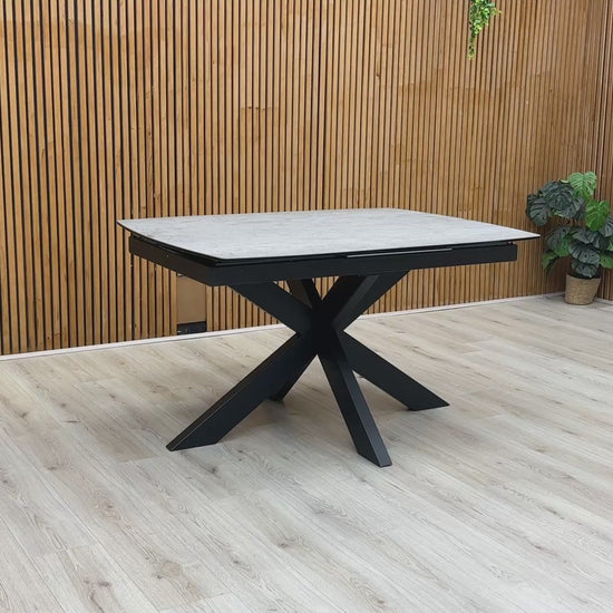 ‘Raul’ Matte Silver Ceramic Top 130cm Pop Up Extending Dining Table