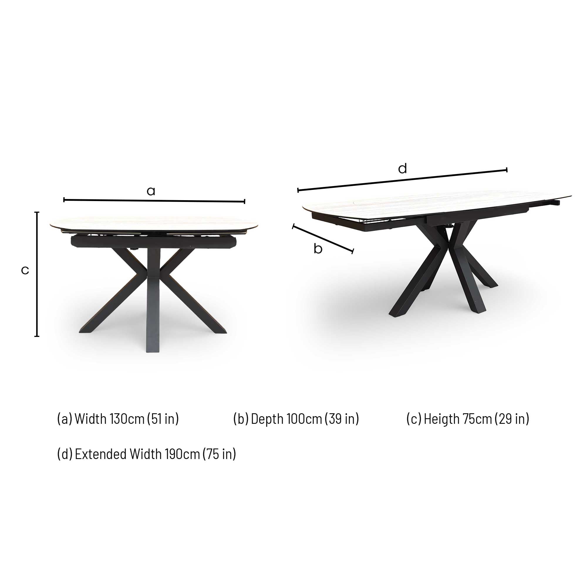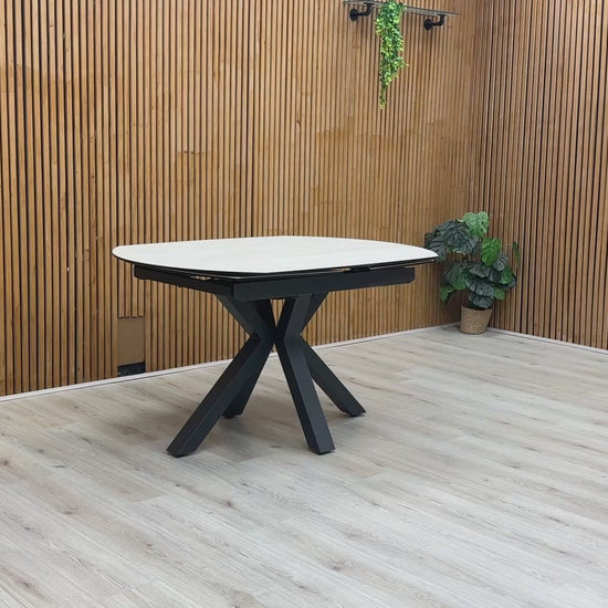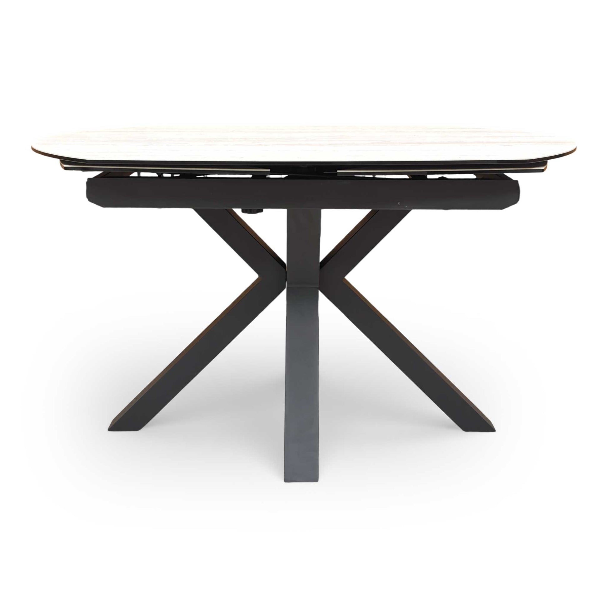 ‘Raul’ Travertine Ceramic Top 130cm Swivel Extending Dining Table