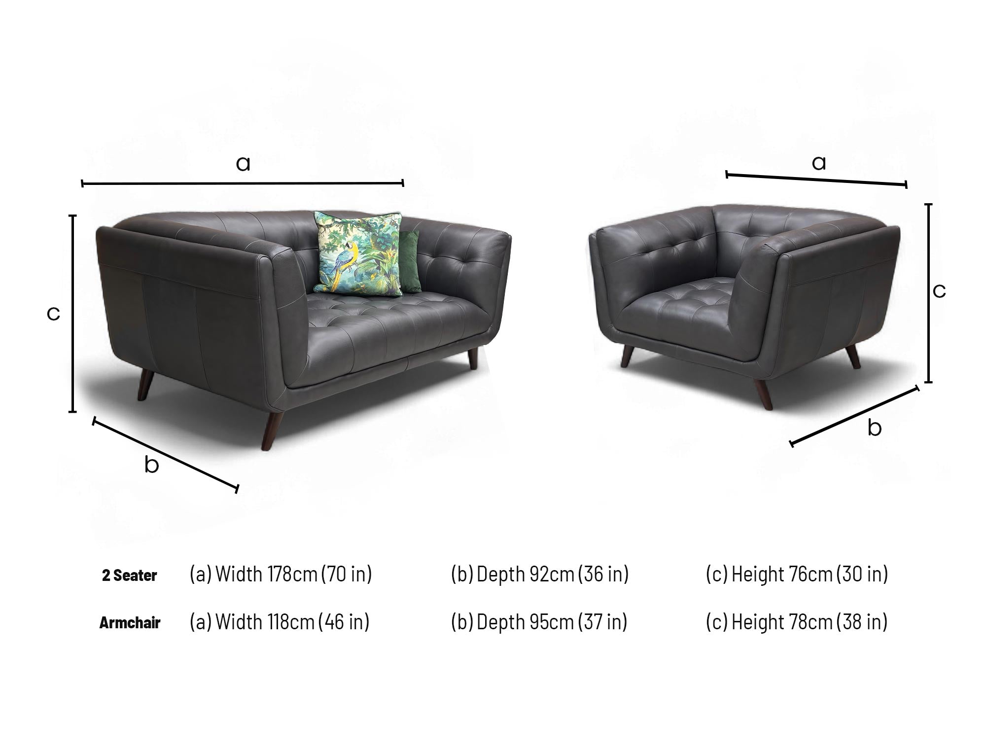 • The Furniture Village 'Rene' 2 Seater Sofa + Armchair Cat Oslo in Navy Blue Leather is a stylish and contemporary addition to any living room.