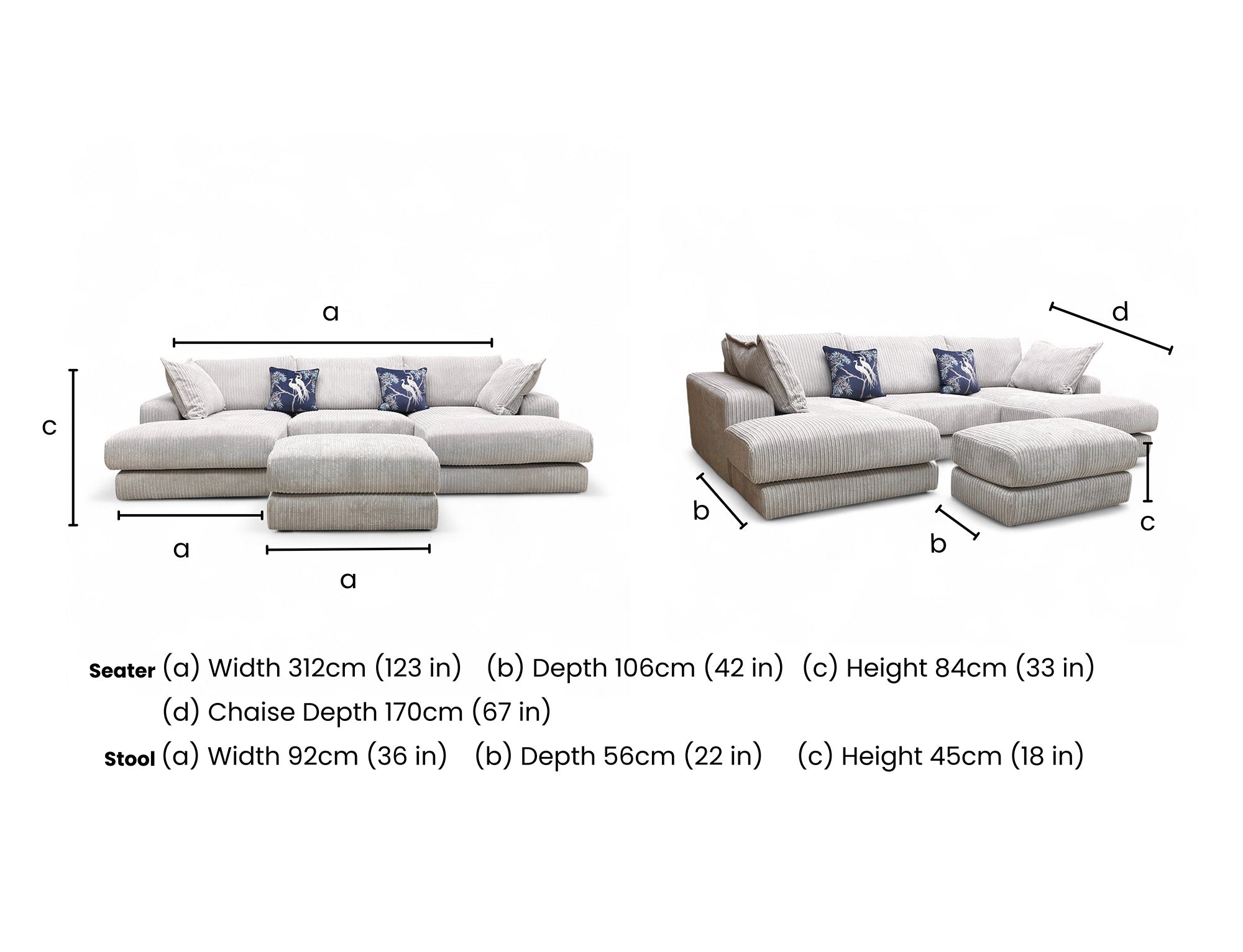- Footstool is designed to sit snugly in the space between the two chaise ends - ideal for movie nights or cosy naps.